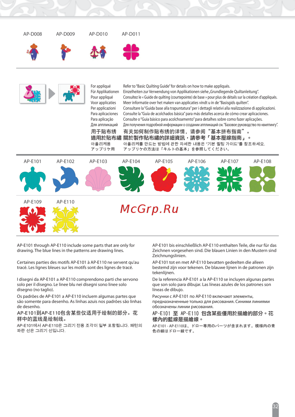 Шаблоны AP-E101 до AP-E110 содержат элементы, предназначенные только для рисования. Узнайте о линиях рисования и аппликациях в нашем руководстве.
