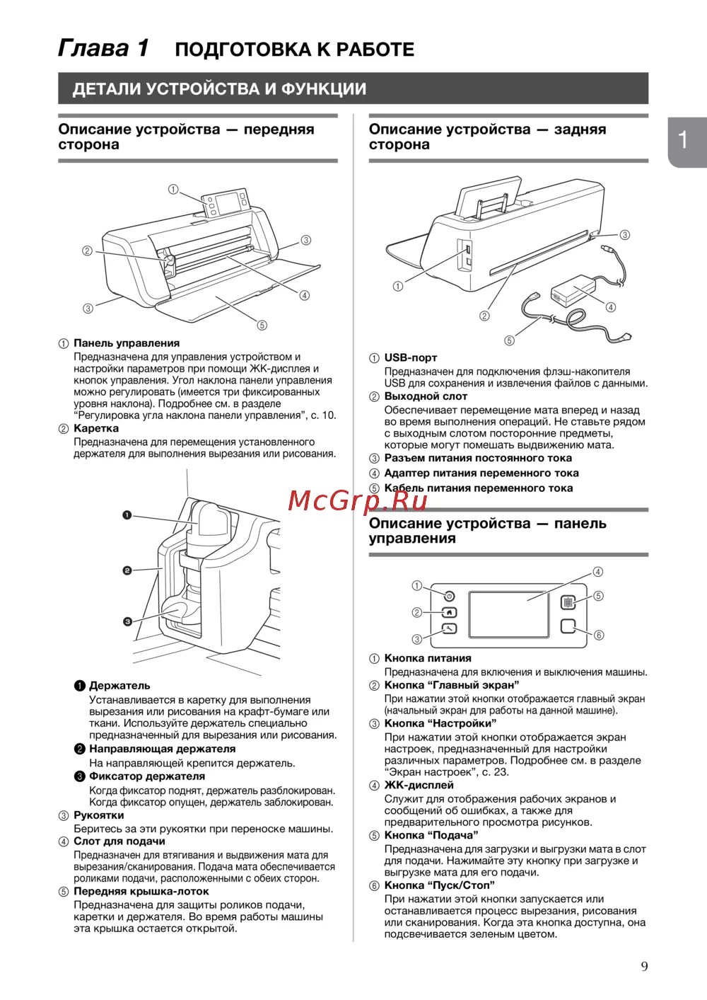Brother CM300 — подготовка к работе: описание устройства и панели управления [11/72]