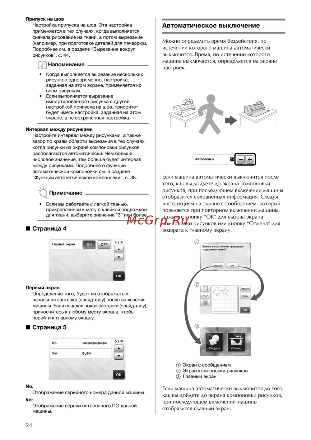 ![Brother CM300 [26/72] Если машина автоматически выключится до того как вы дойдете до экрана компоновки рисунков при последующем включении машины отобразится главный экран](/views2/1470938/page26/bg1a.png)