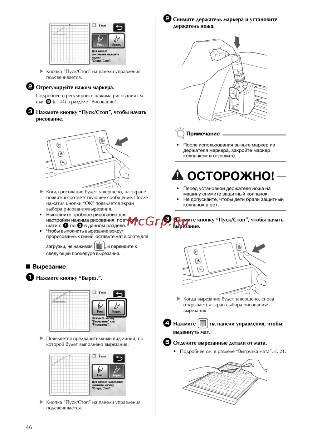 Brother CM300 — инструкция по использованию кнопки Пуск/Стоп для рисования и вырезания [48/72]