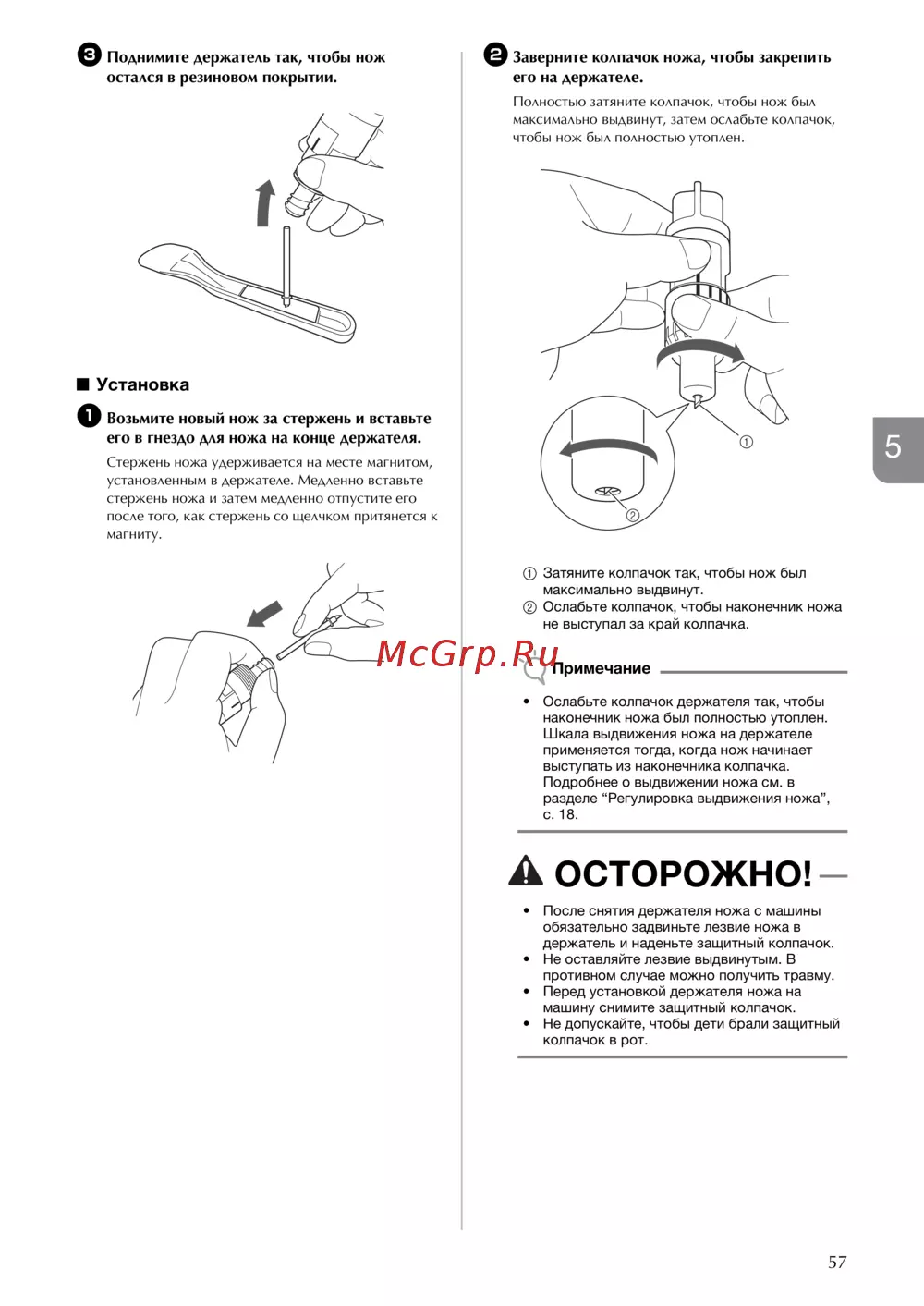 - Поднимите держатель так чтобы нож остался в резиновом покрытии p.59