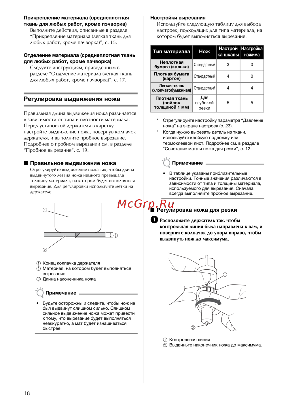 Brother CM300 — инструкции по работе с материалами и настройке ножа для резки [20/72]