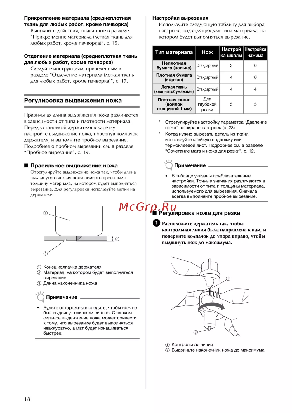 Узнайте, как правильно прикреплять и отделять среднеплотные ткани, а также настраивать нож для резки. Следуйте инструкциям для достижения лучших результатов.