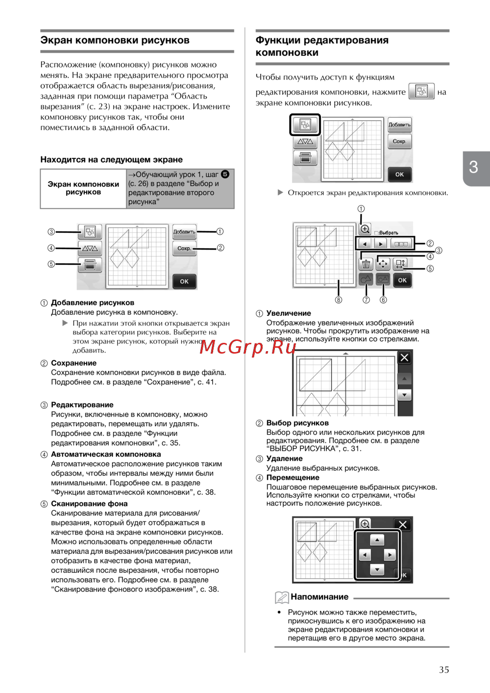 редактирования компоновки”, с. 35.