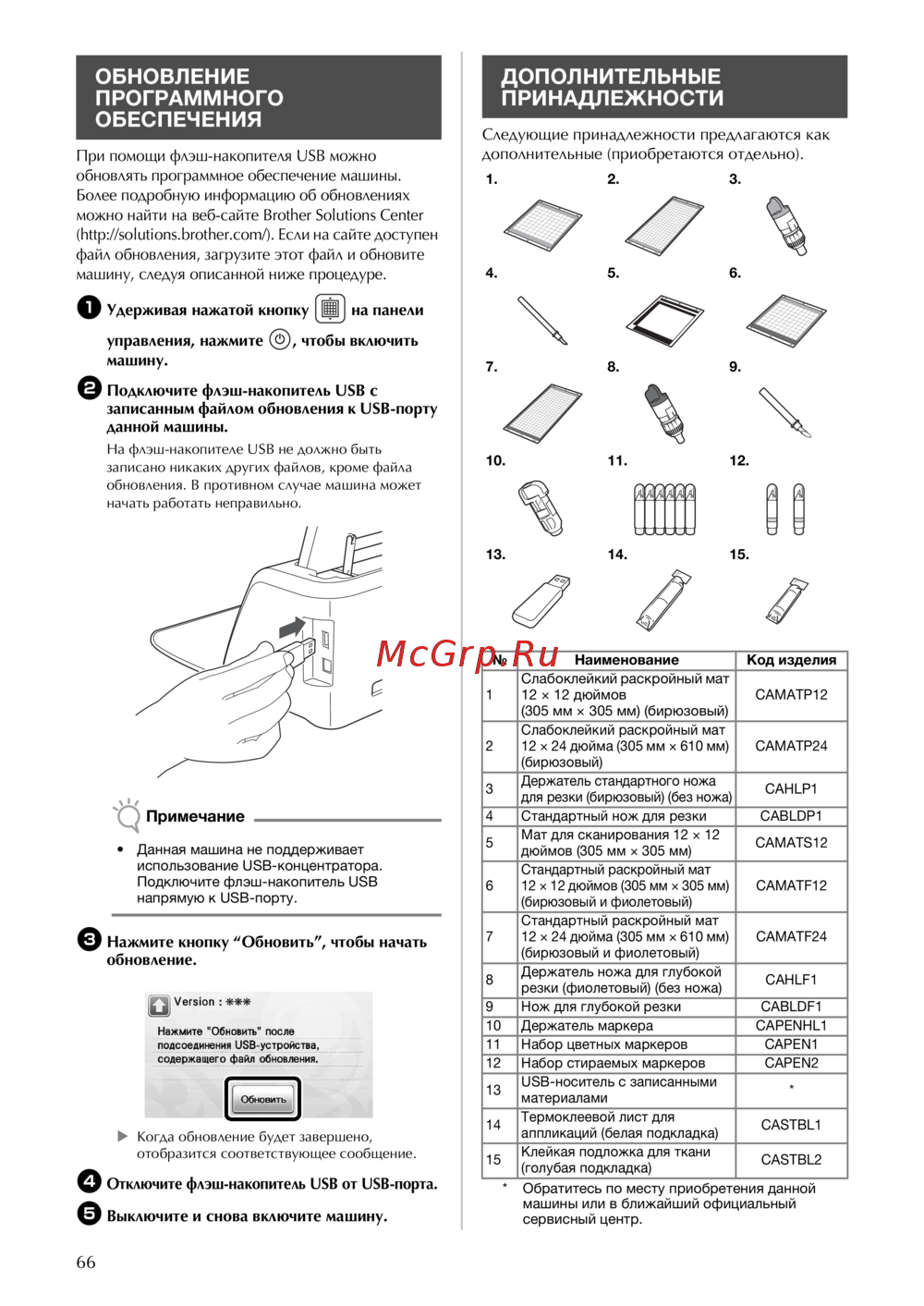 - При помощи флэш накопителя usb можно обновлять программное обеспечение машины более подробную информацию об обновлениях можно найти на веб сайте brother solutions center http solutions brother com если на сайте доступен файл обновления загрузите этот файл и обновите машину следуя описанной ниже процедуре p.68