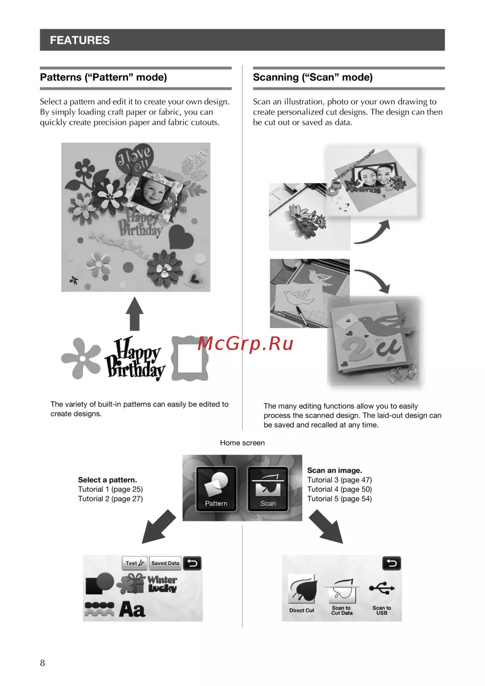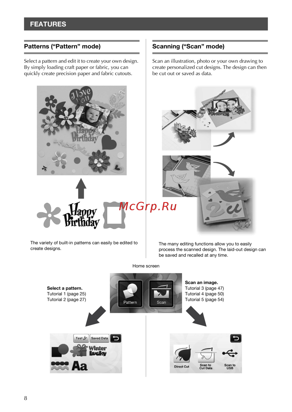 - Select a pattern and edit it to create your own design by simply loading craft paper or fabric you can quickly create precision paper and fabric cutouts p.10
