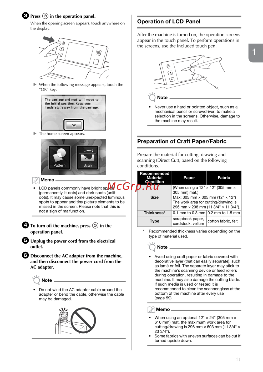 Brother CM600 — инструкция по использованию сенсорной панели и материалов для резки [13/71]