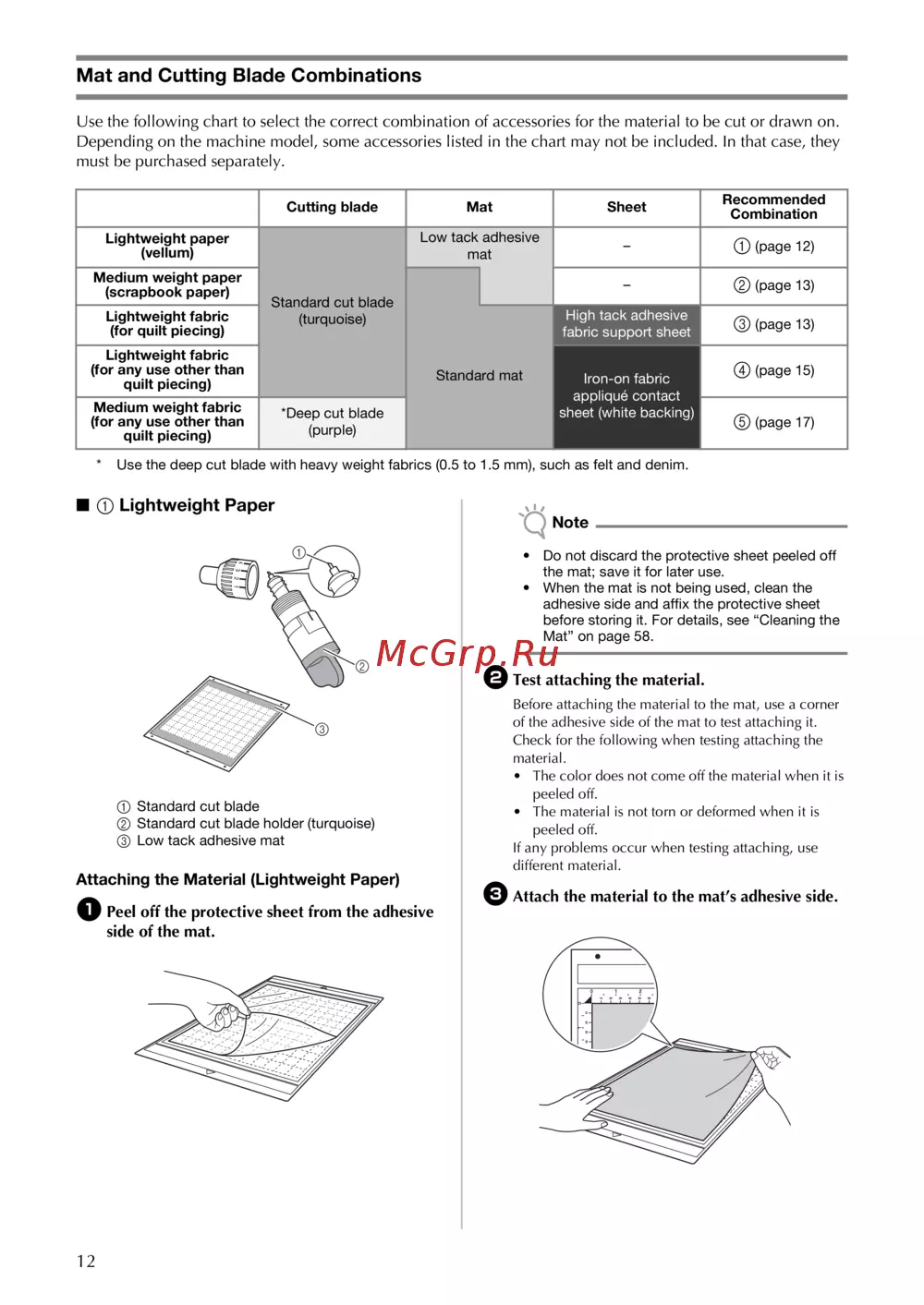 Brother CM600 — выбор правильных лезвий и матов для резки материалов [14/71]