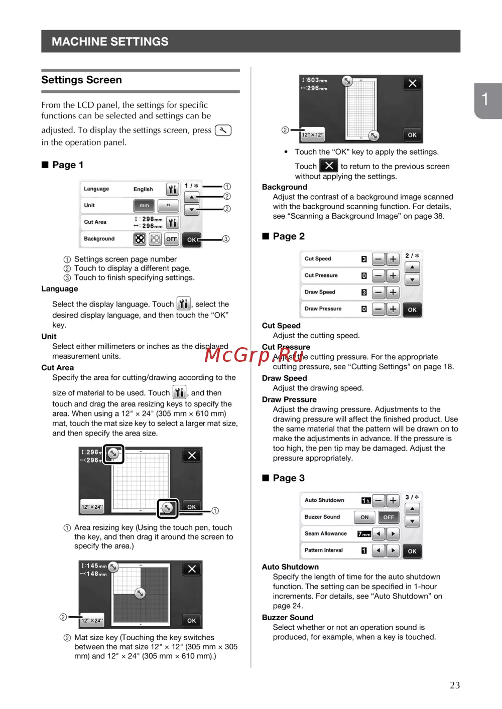 MACHINE SETTINGS