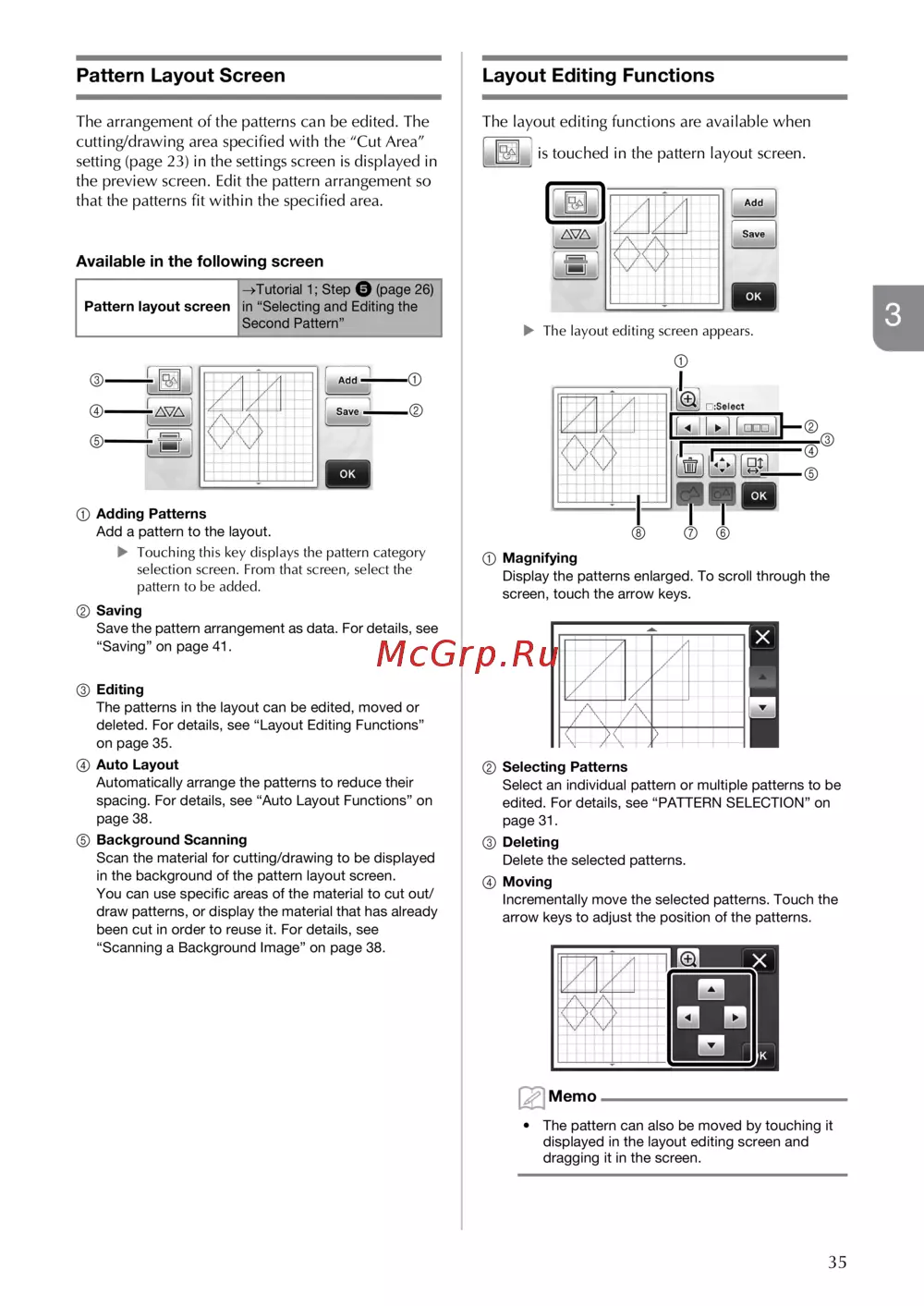 Brother CM600 [37/71] Is touched in the pattern layout screen