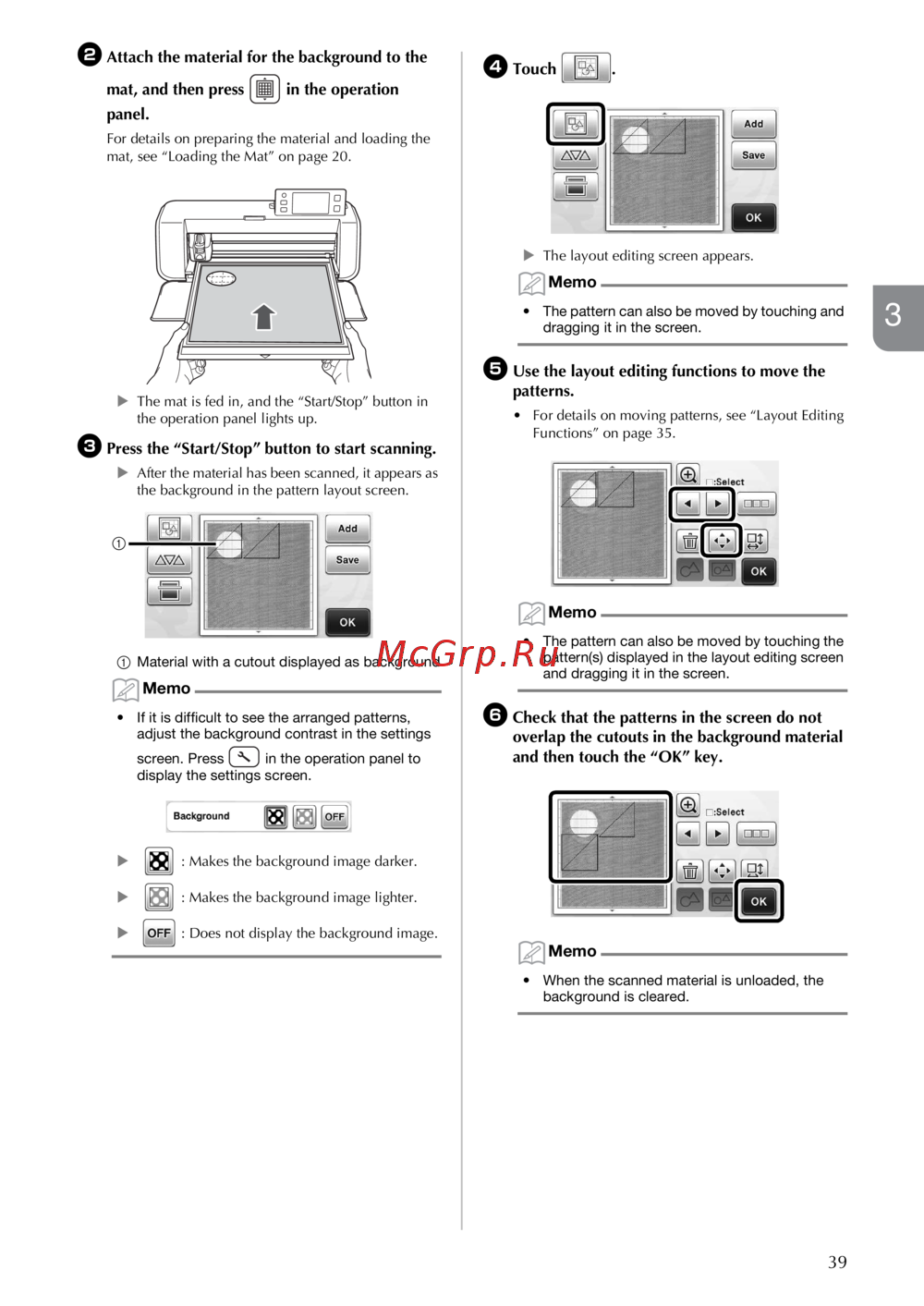 - Cuttings and cut edges of patterns attached to the mat may reduce the mat s adhesive strength and prevent correct operation periodically clean the mat using the included spatula lightly scrape off any cuttings attached to the mat p.60