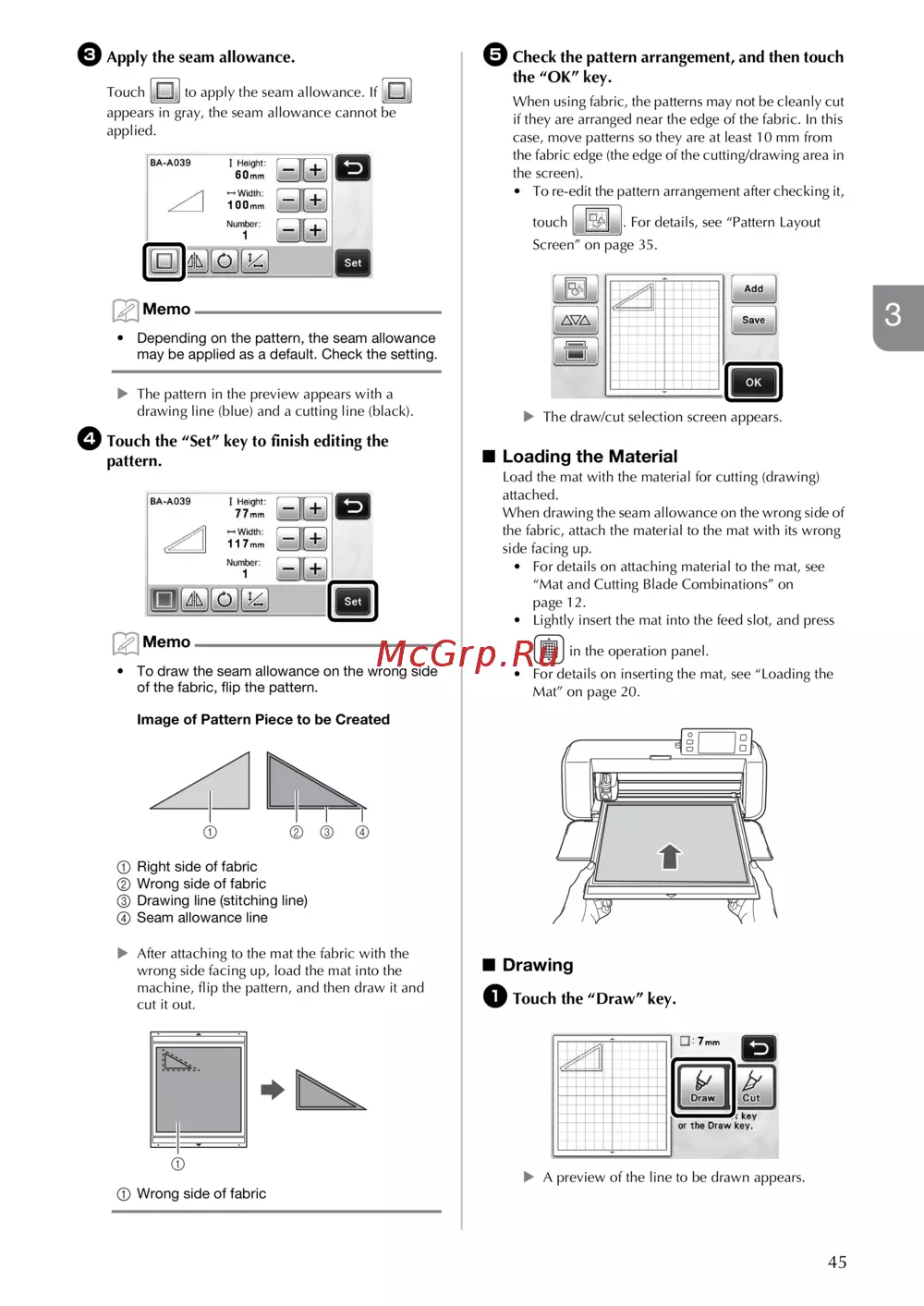 - Load the mat into the feed slot p.57