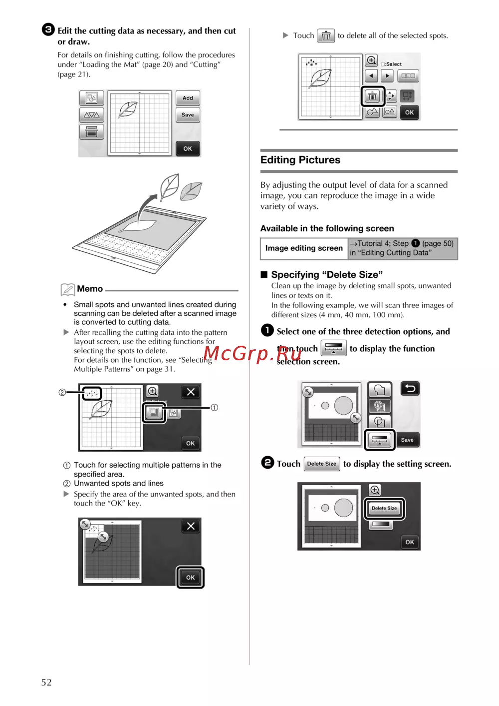 - Cuttings and cut edges of patterns attached to the mat may reduce the mat s adhesive strength and prevent correct operation periodically clean the mat using the included spatula lightly scrape off any cuttings attached to the mat p.60
