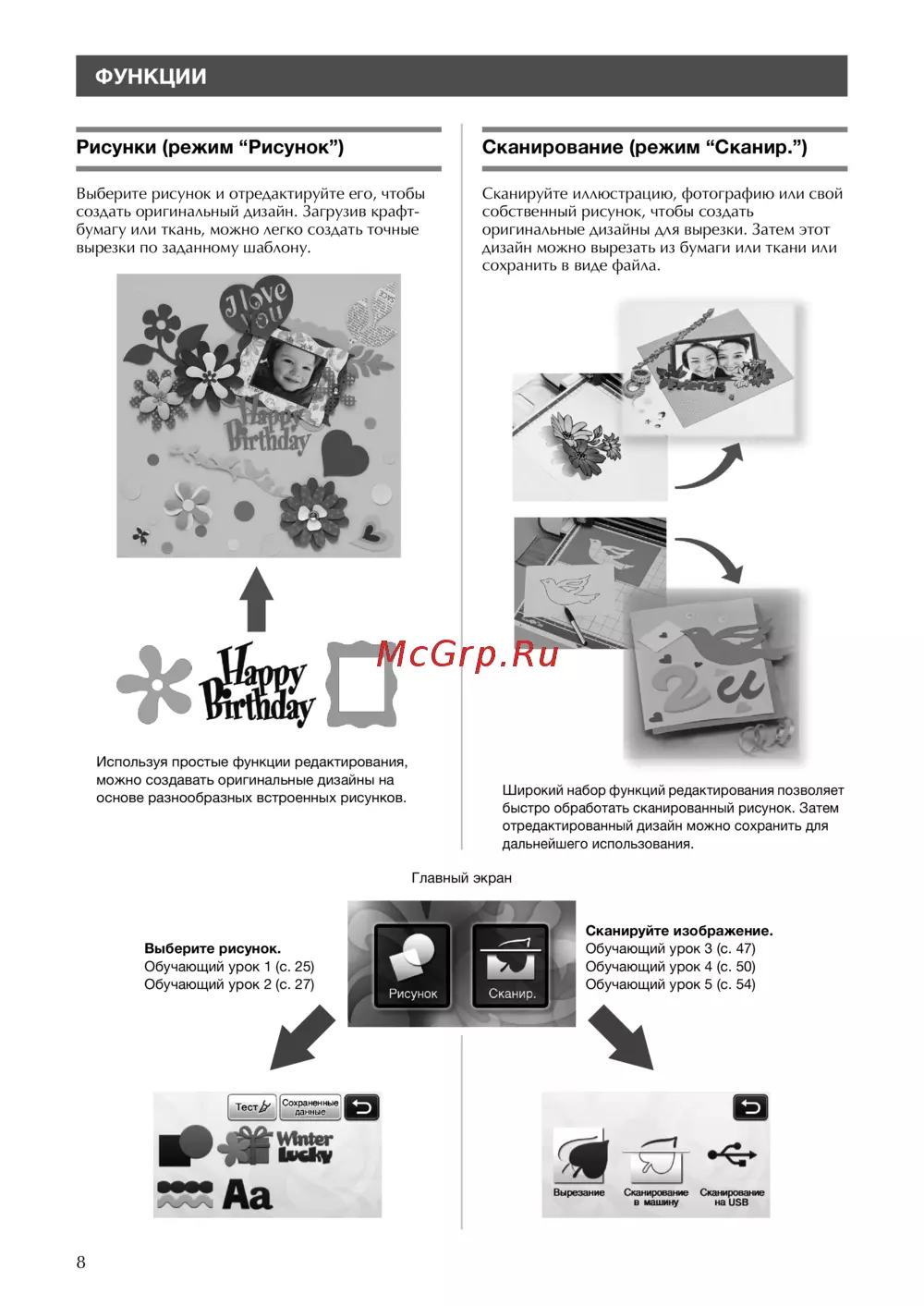 - Сканируйте иллюстрацию фотографию или свой собственный рисунок чтобы создать оригинальные дизайны для вырезки затем этот дизайн можно вырезать из бумаги или ткани или сохранить в виде файла p.10