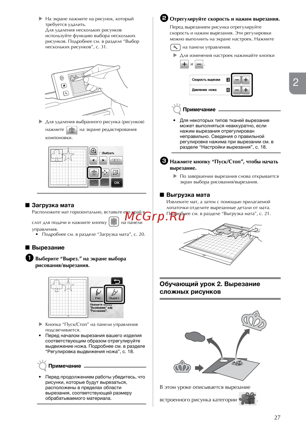 - Мат подается под углом и не подается во время вырезания рисования p.64
