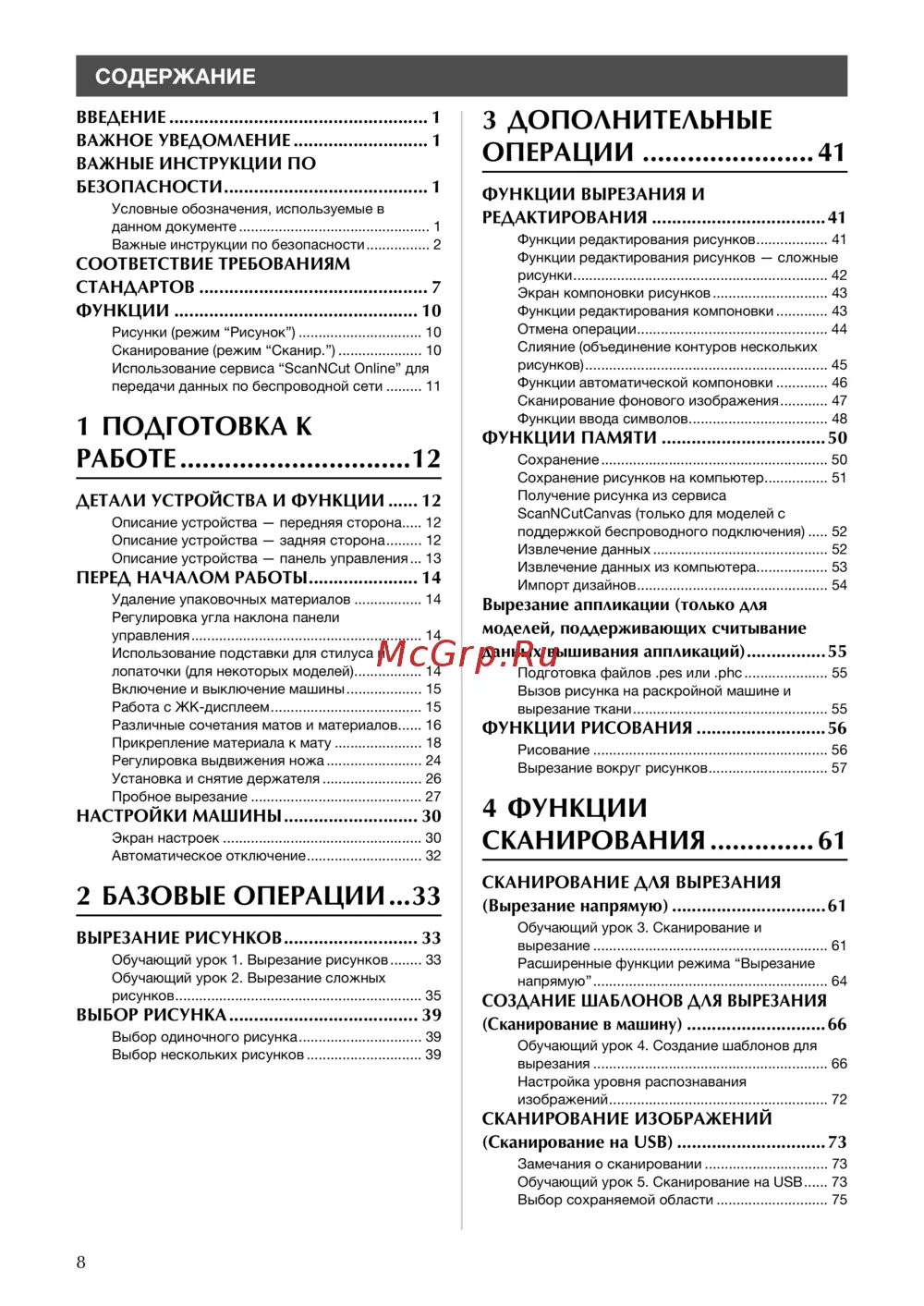 - Настройки сканирования p.75