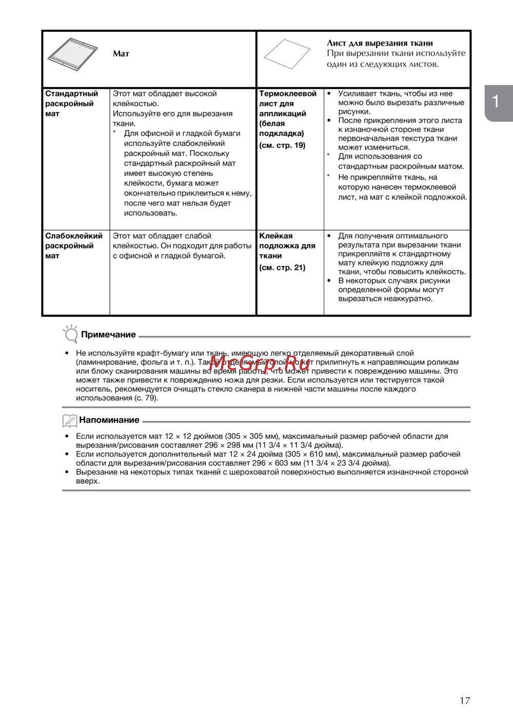 • Если используется мат 12 × 12 дюймов (305 × 305 мм), максимальный размер рабочей области для