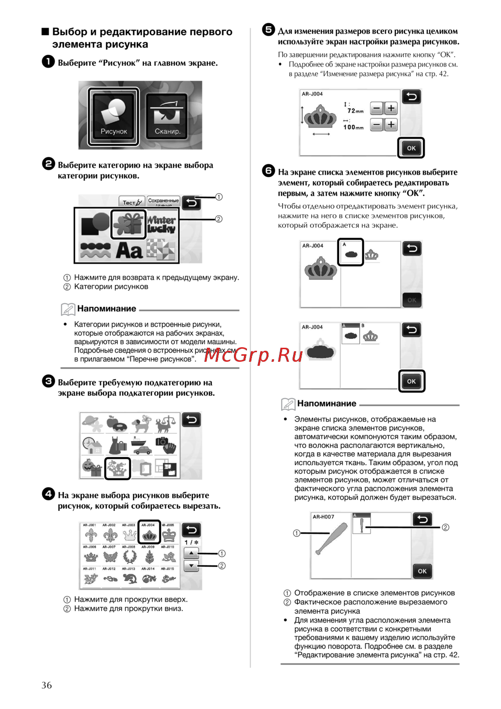 - Вырезание аппликации только для моделей поддерживающих считывание данных вышивания аппликаций 5 p.10