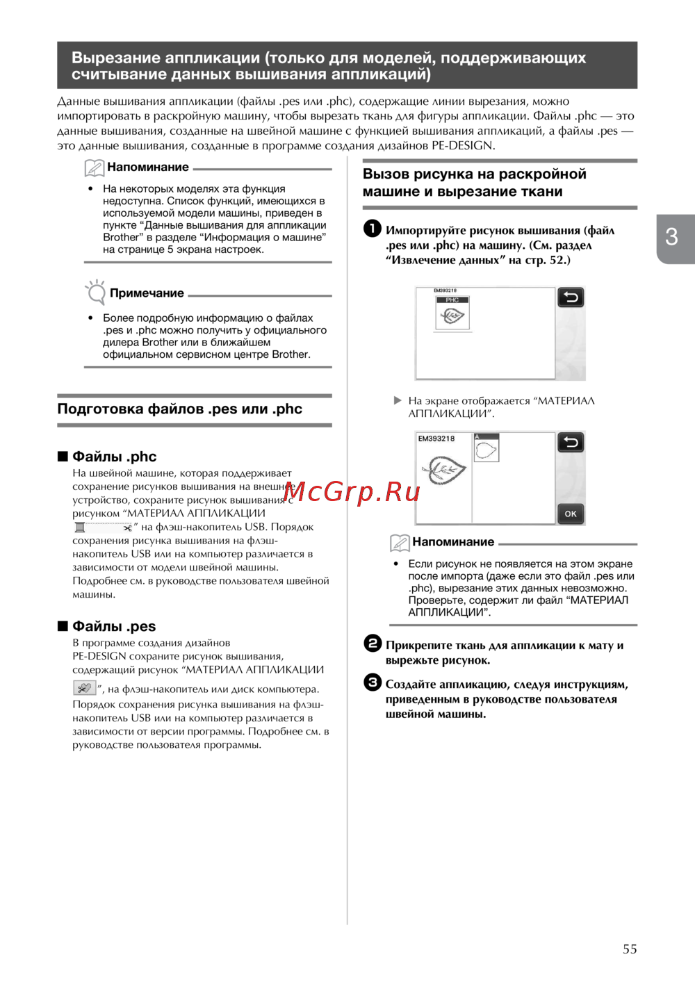 Данные вышивания аппликации (файлы .pes или .phc), содержащие линии вырезания, можно