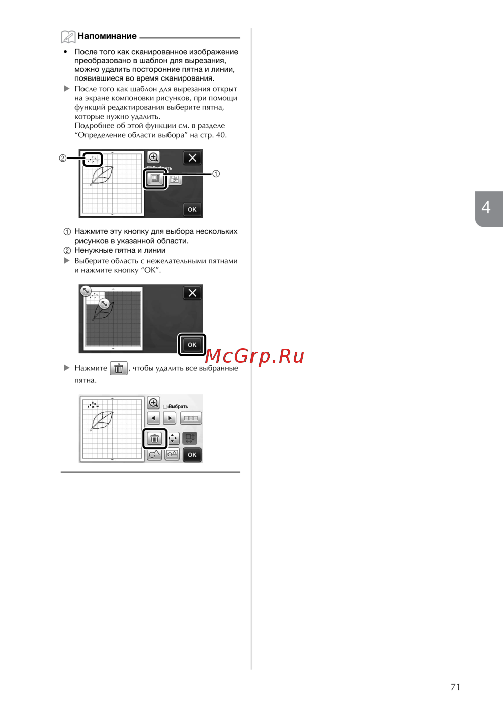 - Вырезание аппликации только для моделей поддерживающих считывание данных вышивания аппликаций 5 p.10