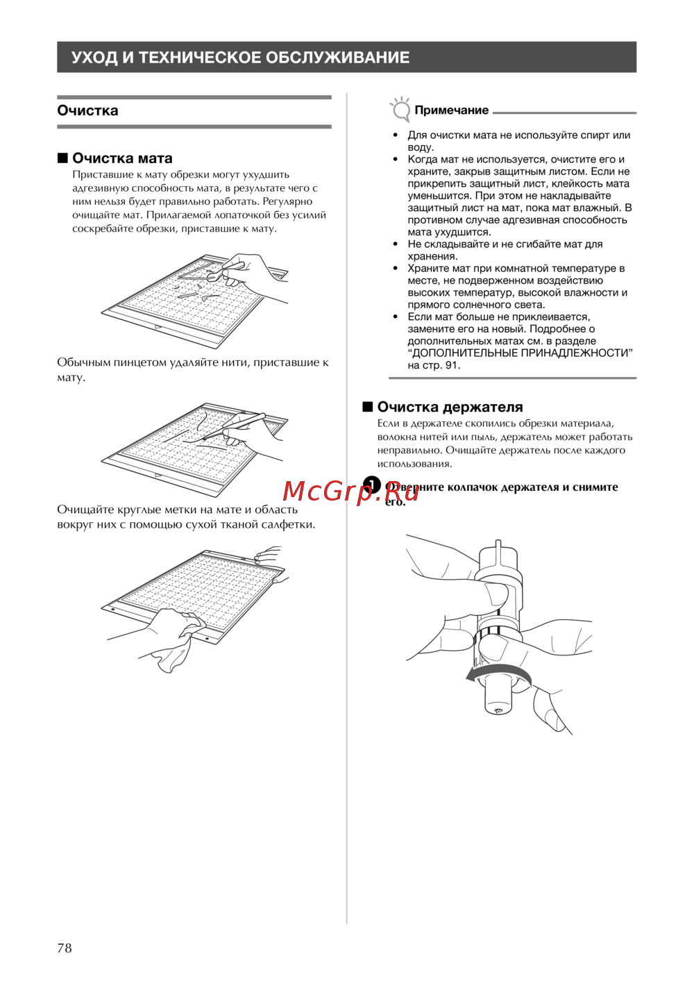 Brother CM700 — правильная очистка и уход за рабочими матами и держателями [80/96]