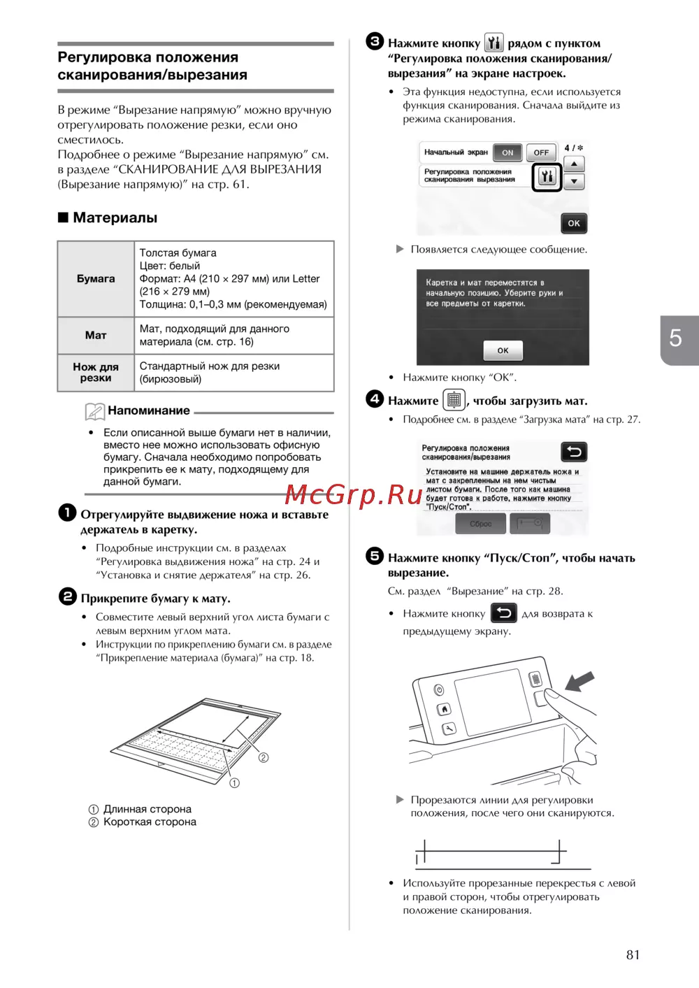 Узнайте, как вручную отрегулировать положение резки и сканирования. Подробные инструкции по настройке и использованию различных материалов для вырезания.