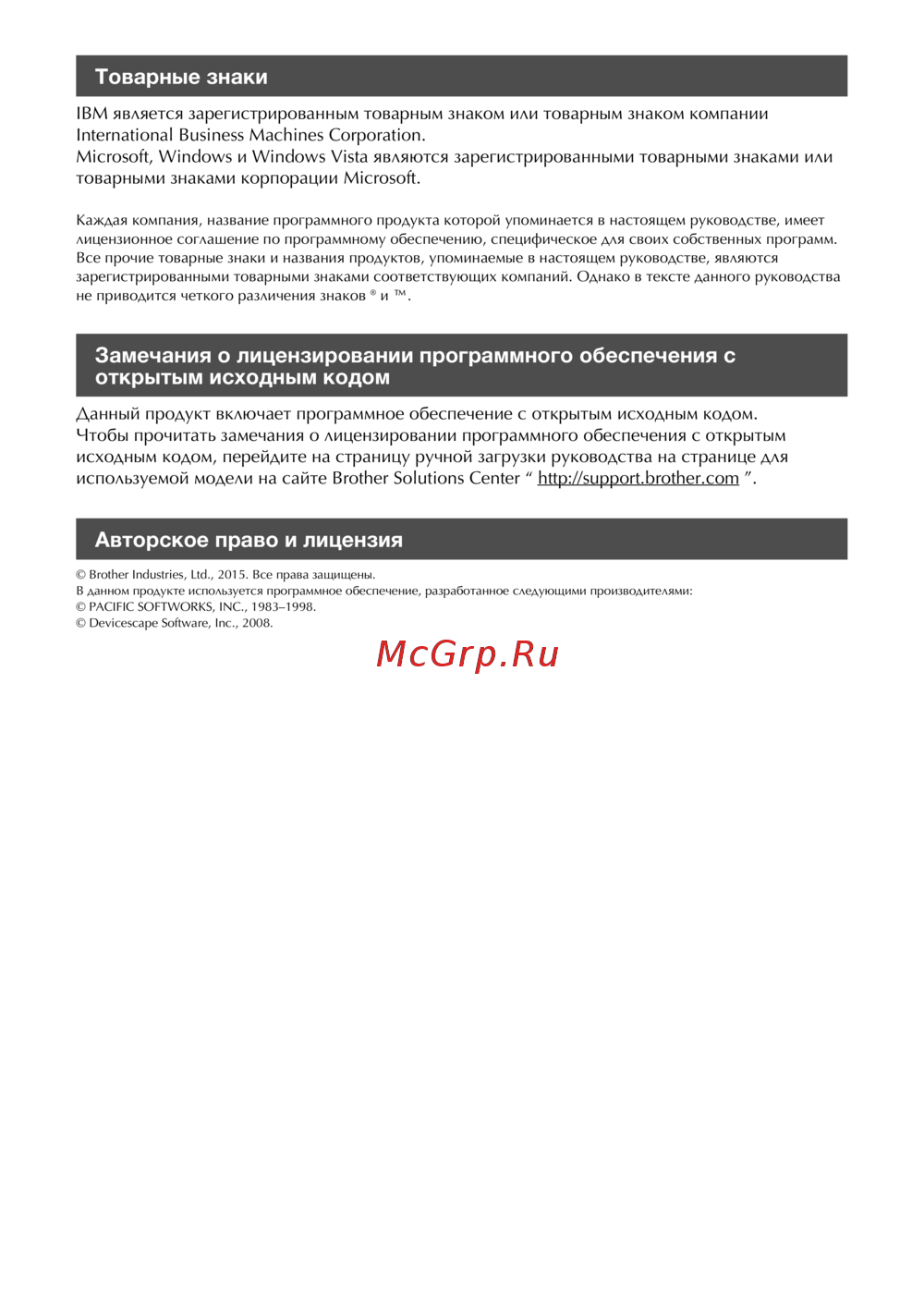 Brother CM700 — информация о товарных знаках и лицензировании программного обеспечения [2/96]
