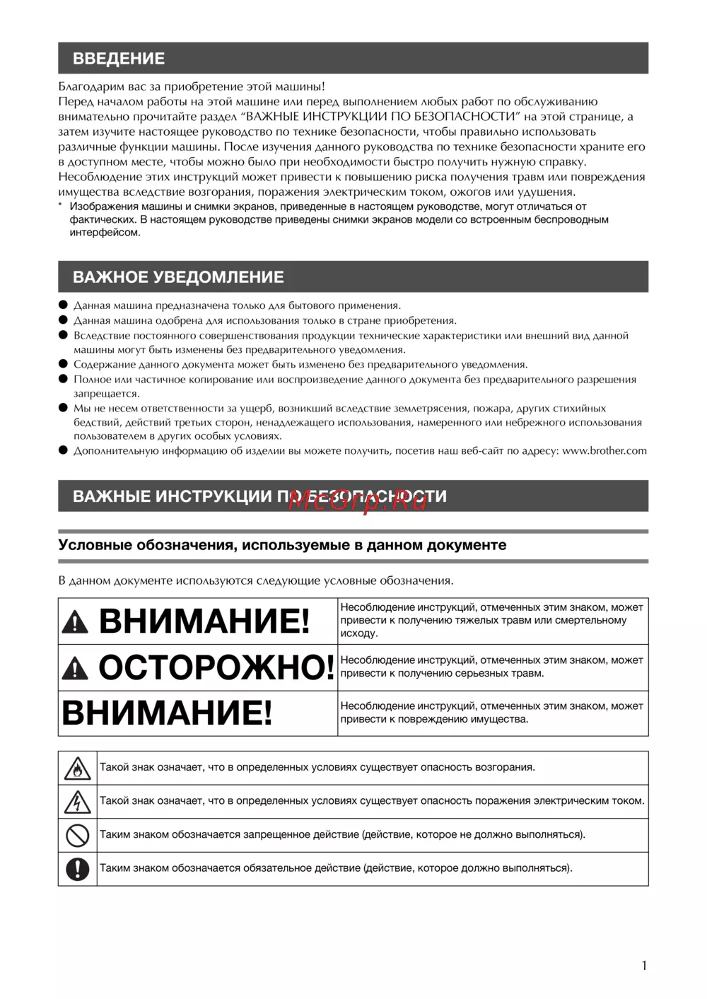 - Обеспечение безопасности при использовании машины p.6