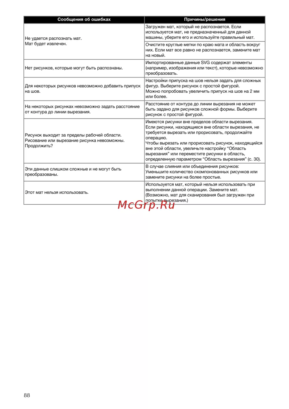 Brother CM700 — ошибки при работе с матами и рисунками: причины и решения [90/96]