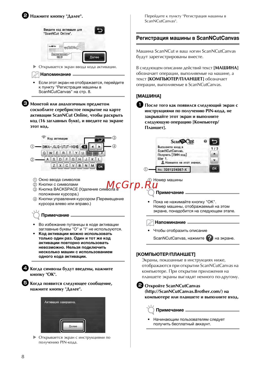 - Необходимо ввести код активации напечатанный на карте активации scanncut online для вашей машины p.9