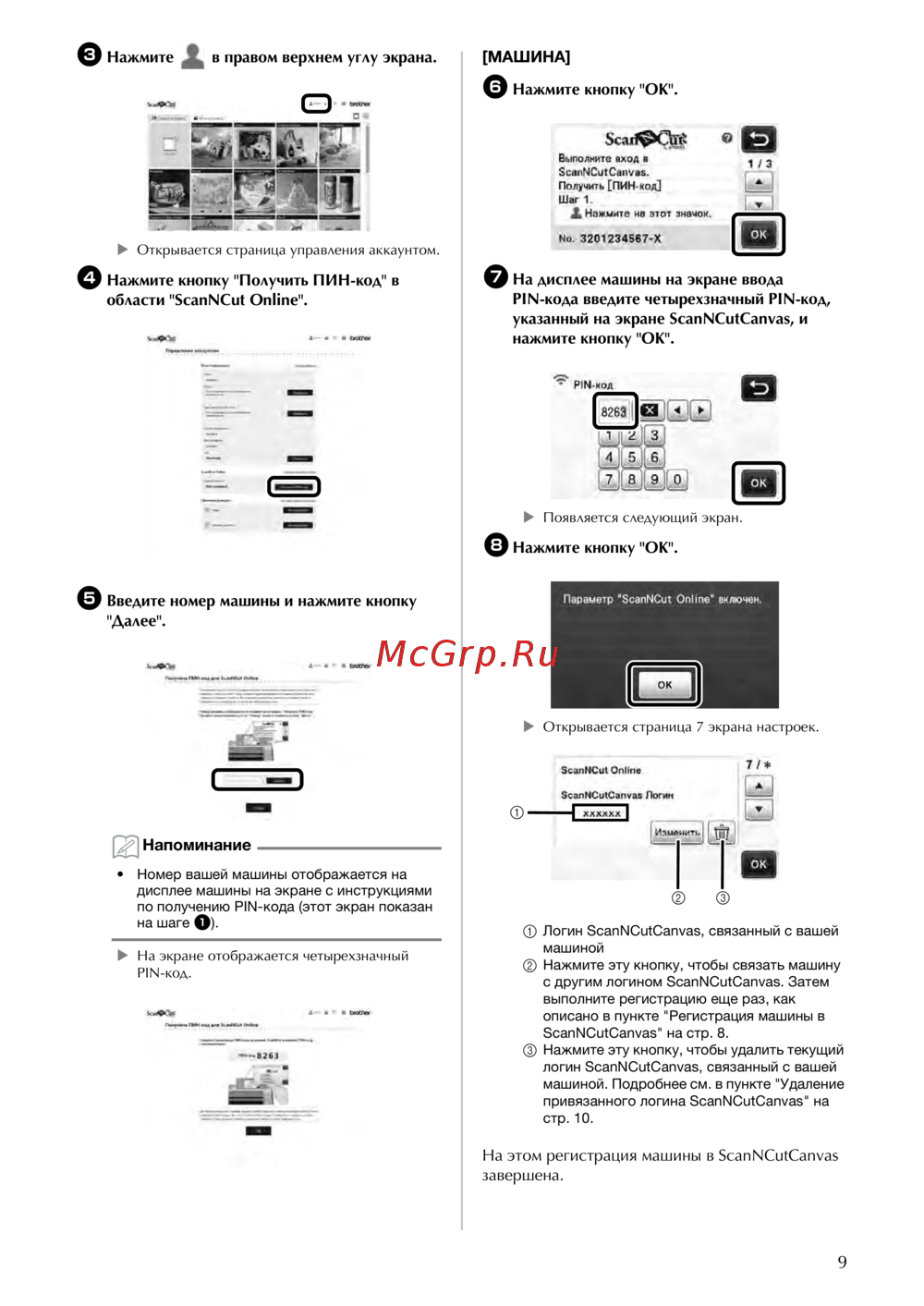 - Регистрация машины в сервисе scanncutcanvas p.9