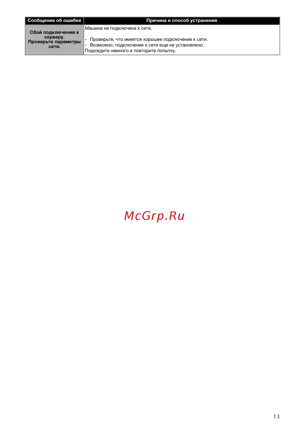 - В следующей таблице приведен список различных сообщений которые могут появляться во время настройки или во время регистрации машины в scanncutcanvas а также способы устранения соответствующих неполадок в случае появления сообщения об ошибке выполните инструкции приведенные в сообщении или операции описанные в данной таблице если проблема не исчезла обратитесь в магазин в котором была куплена машина или в ближайший авторизованный сервисный центр p.13