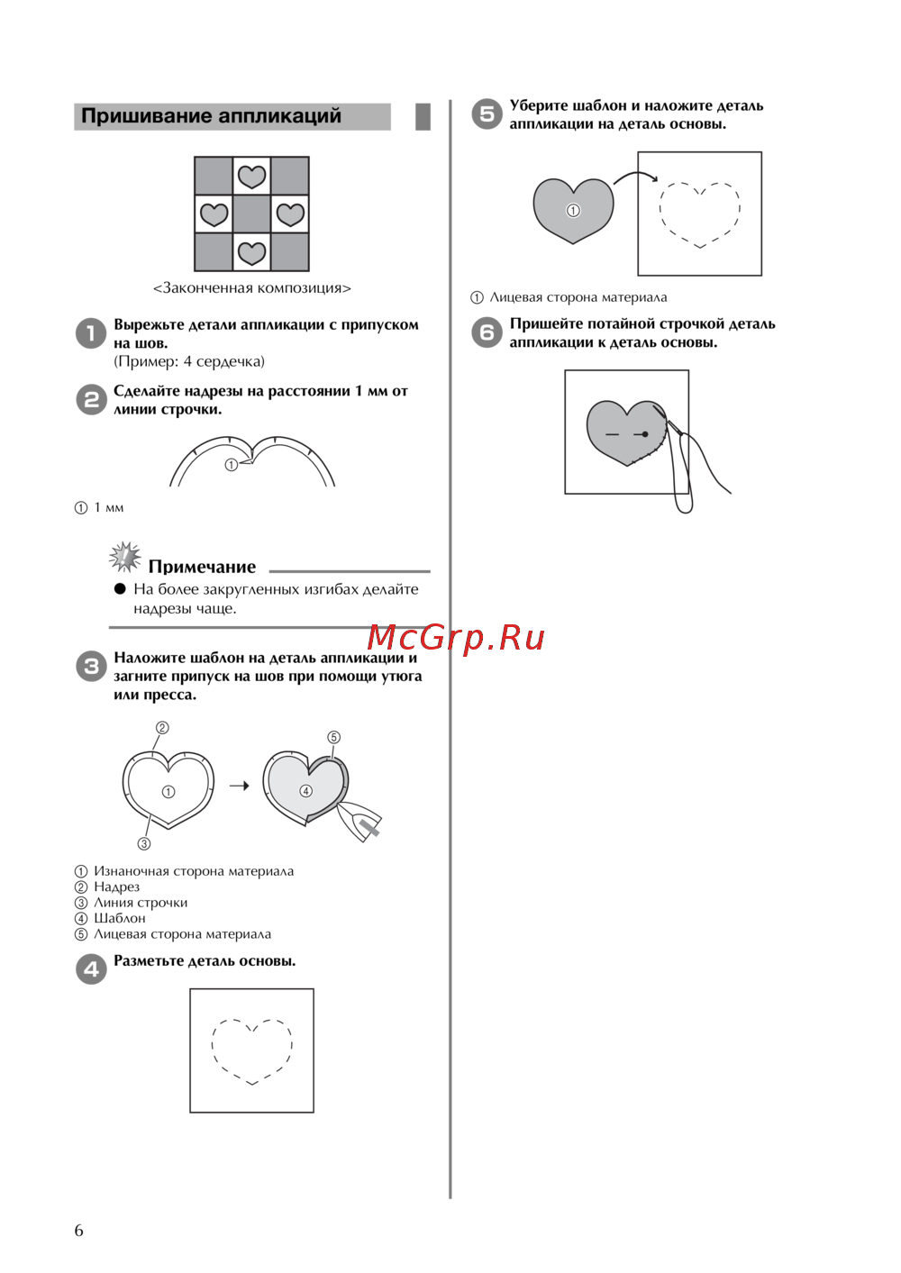 - Наложите шаблон на деталь аппликации и загните припуск на шов при помощи утюга или пресса p.6