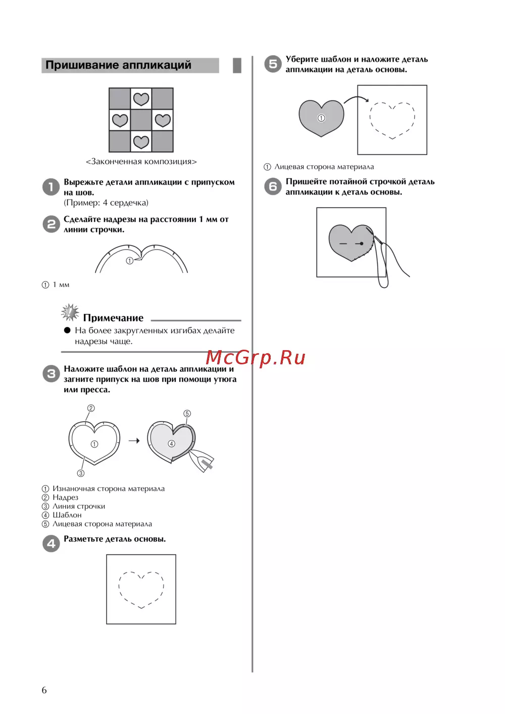 - Вырежьте детали аппликации с припуском на шов пример 4 сердечка p.6