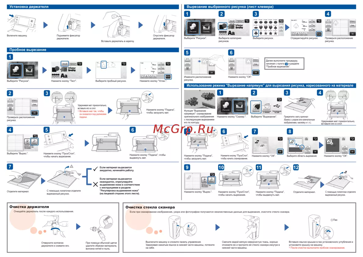 Узнайте, как правильно вырезать и сканировать материалы с помощью устройства. Пошаговые инструкции и советы по настройке и очистке.