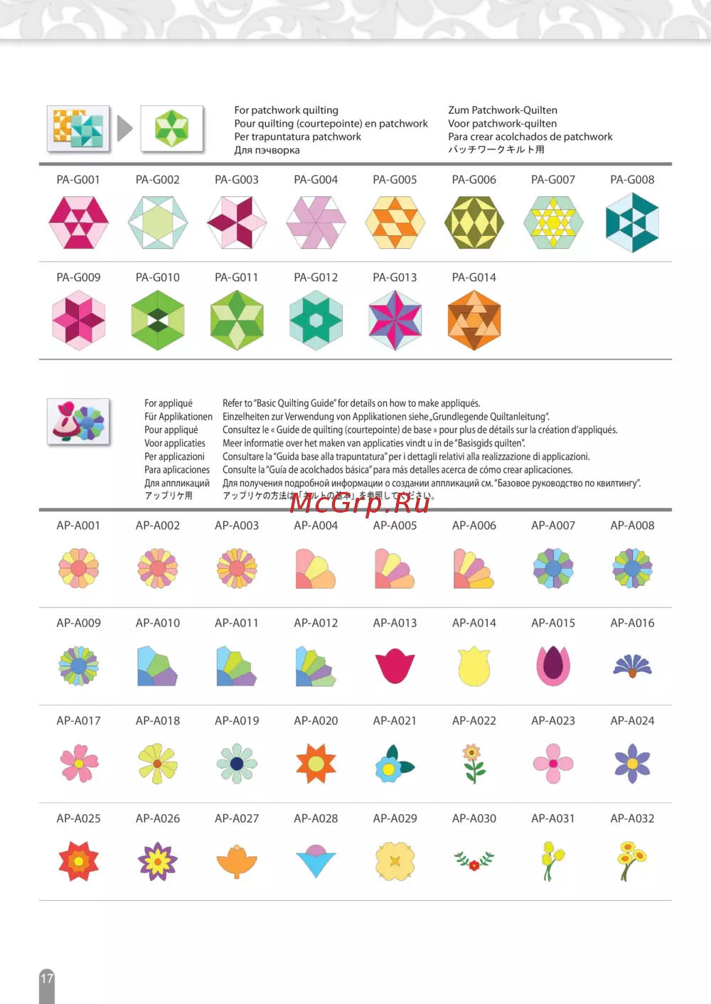 Для аппликаций Для получения подробной информации о создании аппликаций см. “Базовое руководство по квилтингу”.