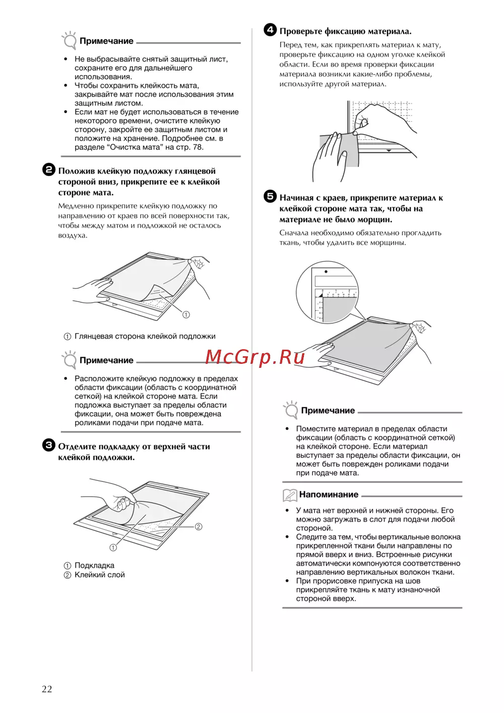 Brother CM900 — инструкции по использованию и хранению клейкого мата [24/96]