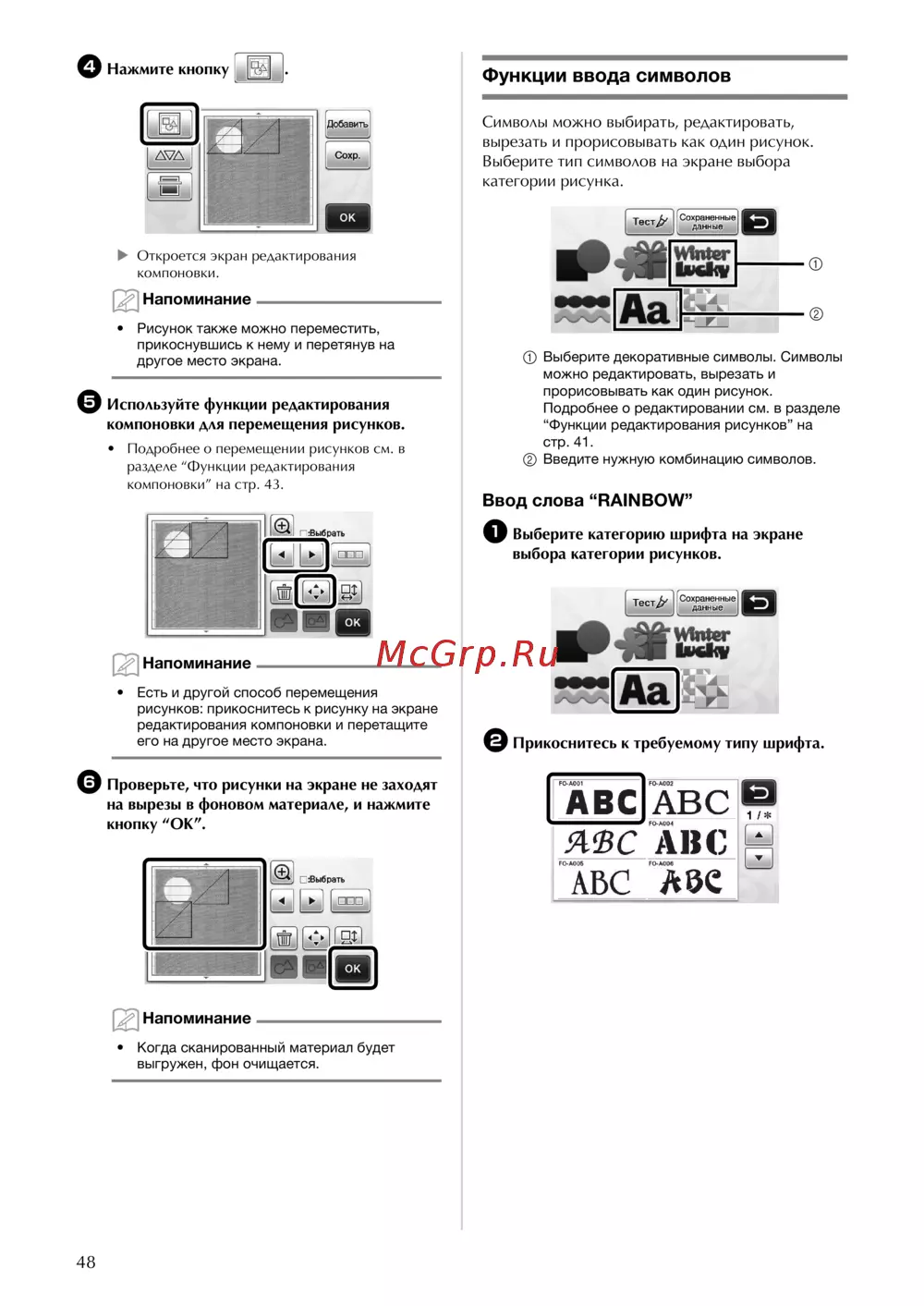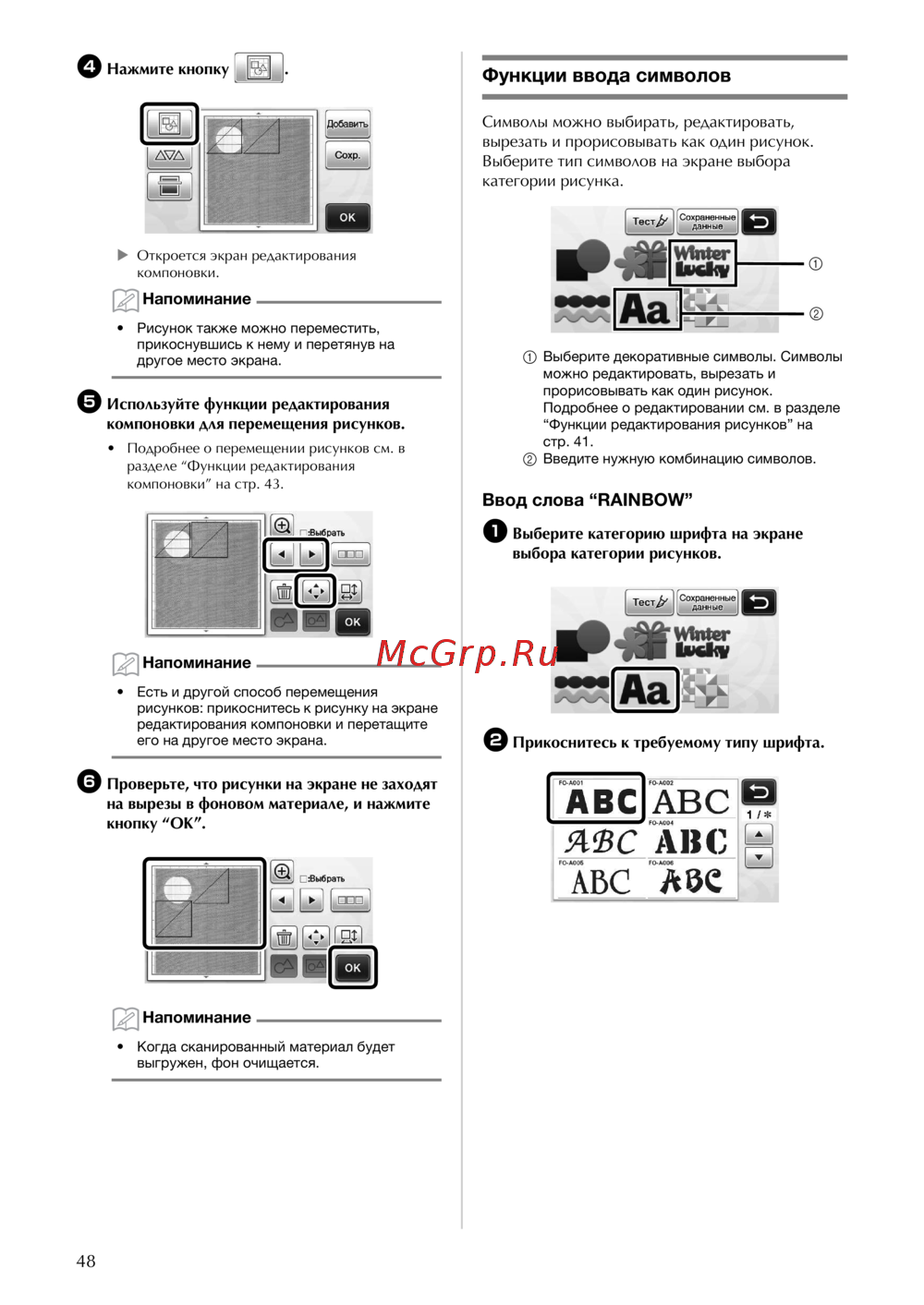 - Вырезание аппликации только для моделей поддерживающих считывание данных вышивания аппликаций 5 p.10