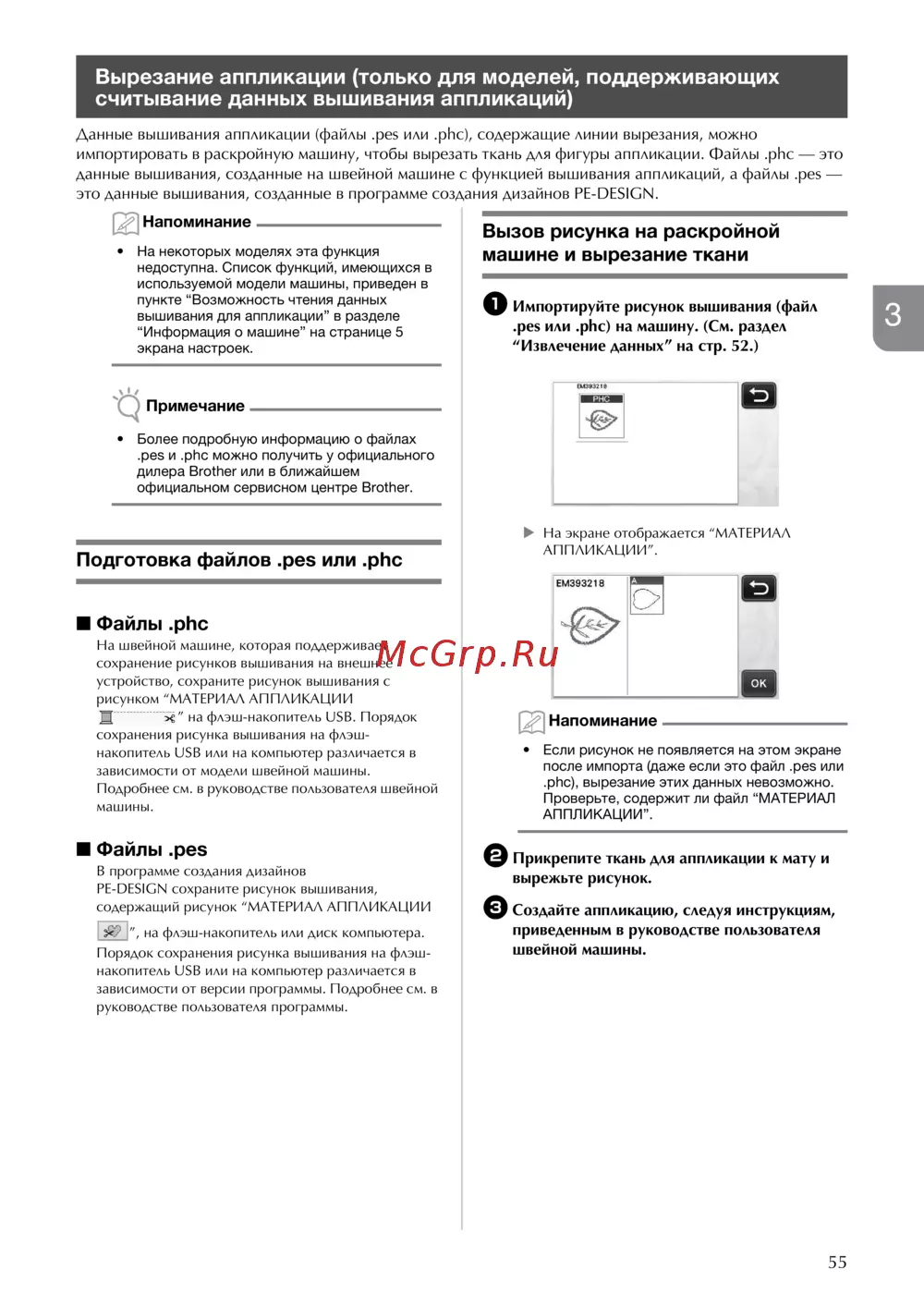 - Вырезание аппликации только для моделей поддерживающих считывание данных вышивания аппликаций 5 p.10