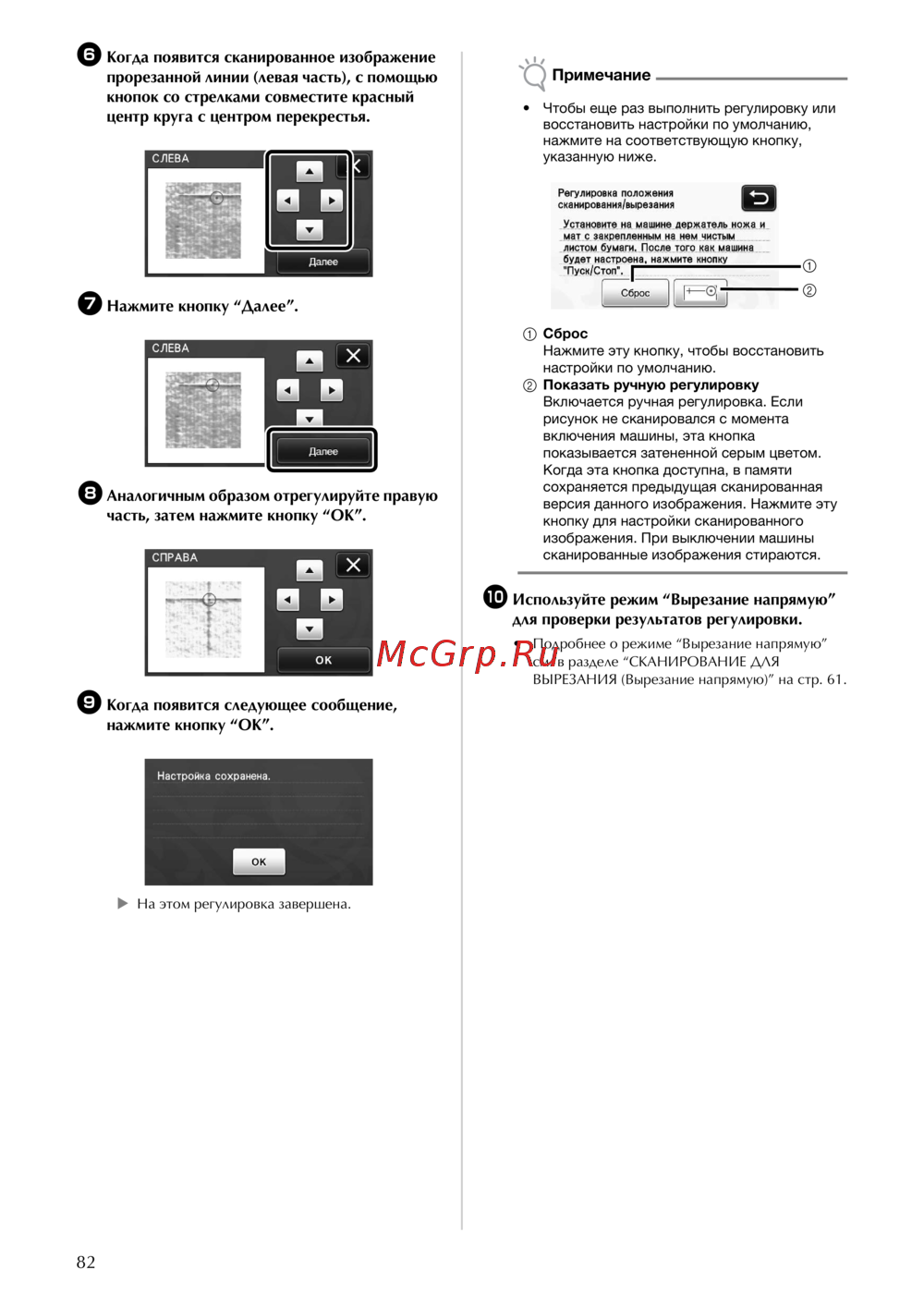 - В режиме вырезание напрямую можно вручную отрегулировать положение резки если оно сместилось подробнее о режиме вырезание напрямую см в разделе сканирование для вырезания вырезание напрямую на стр 61 p.83