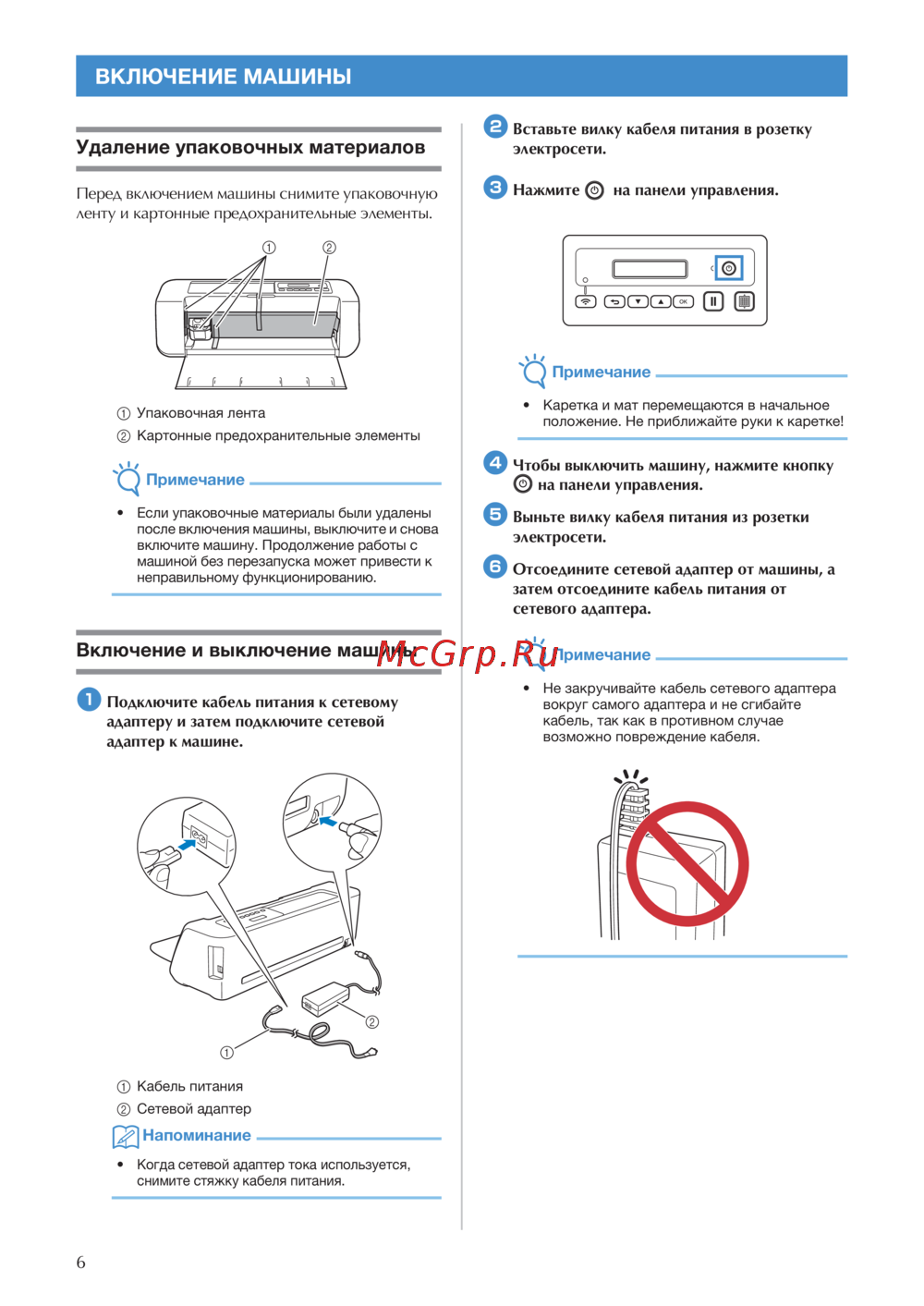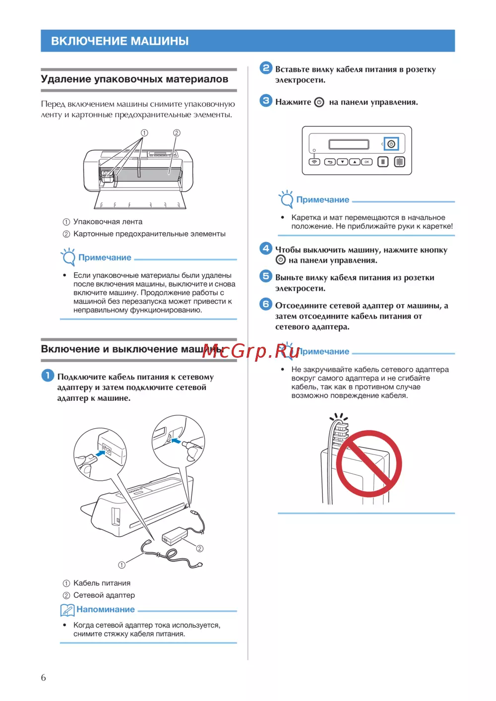 - Обеспечение безопасности при использовании машины p.6