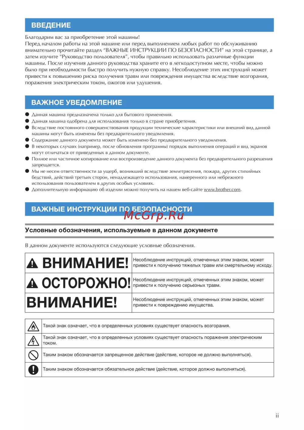 - Обеспечение безопасности при использовании машины p.6