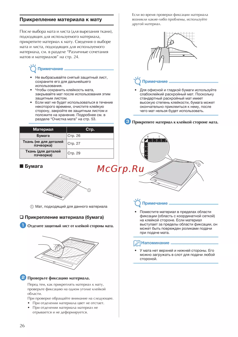 Brother DC100 — как правильно прикрепить материал к мату для резки [34/77]