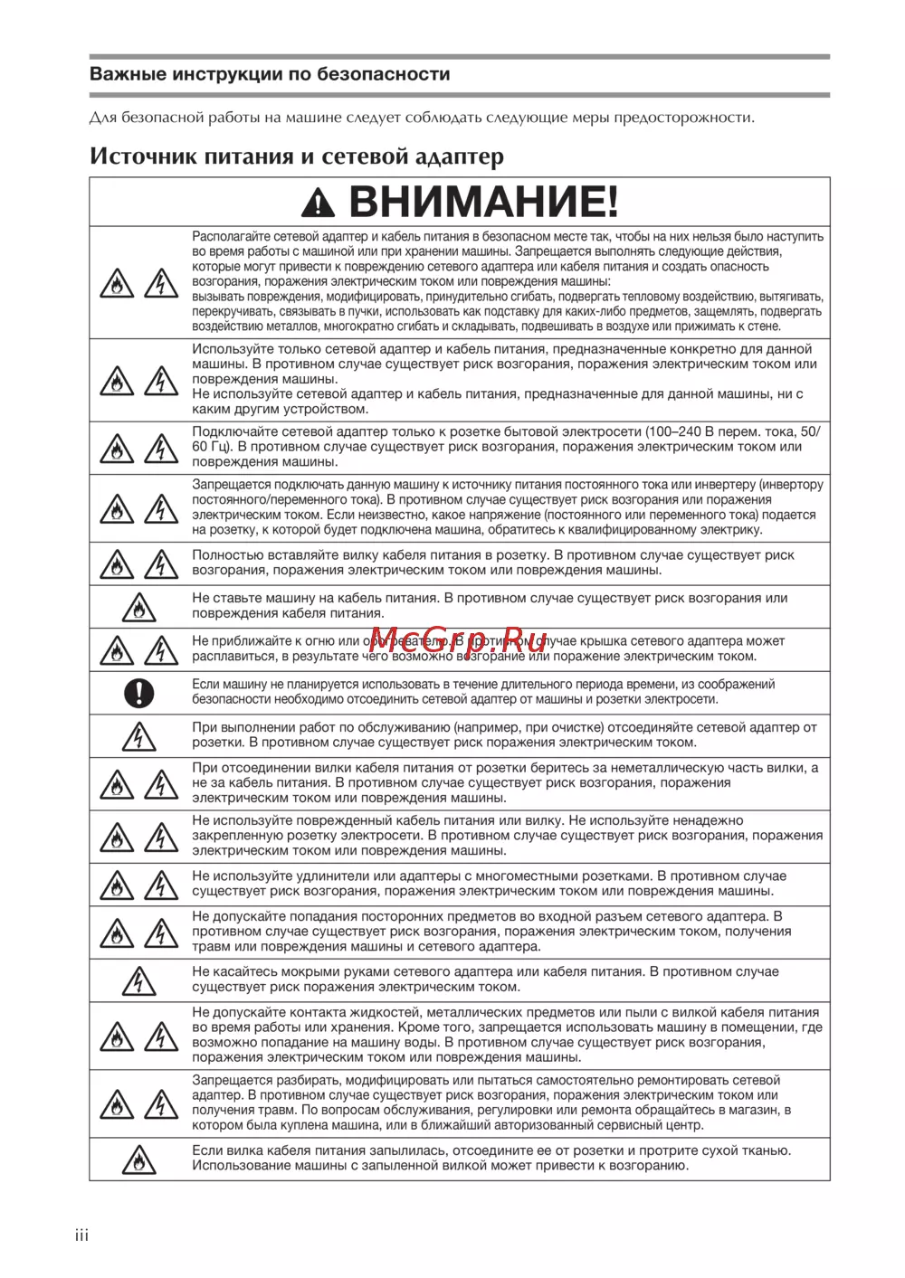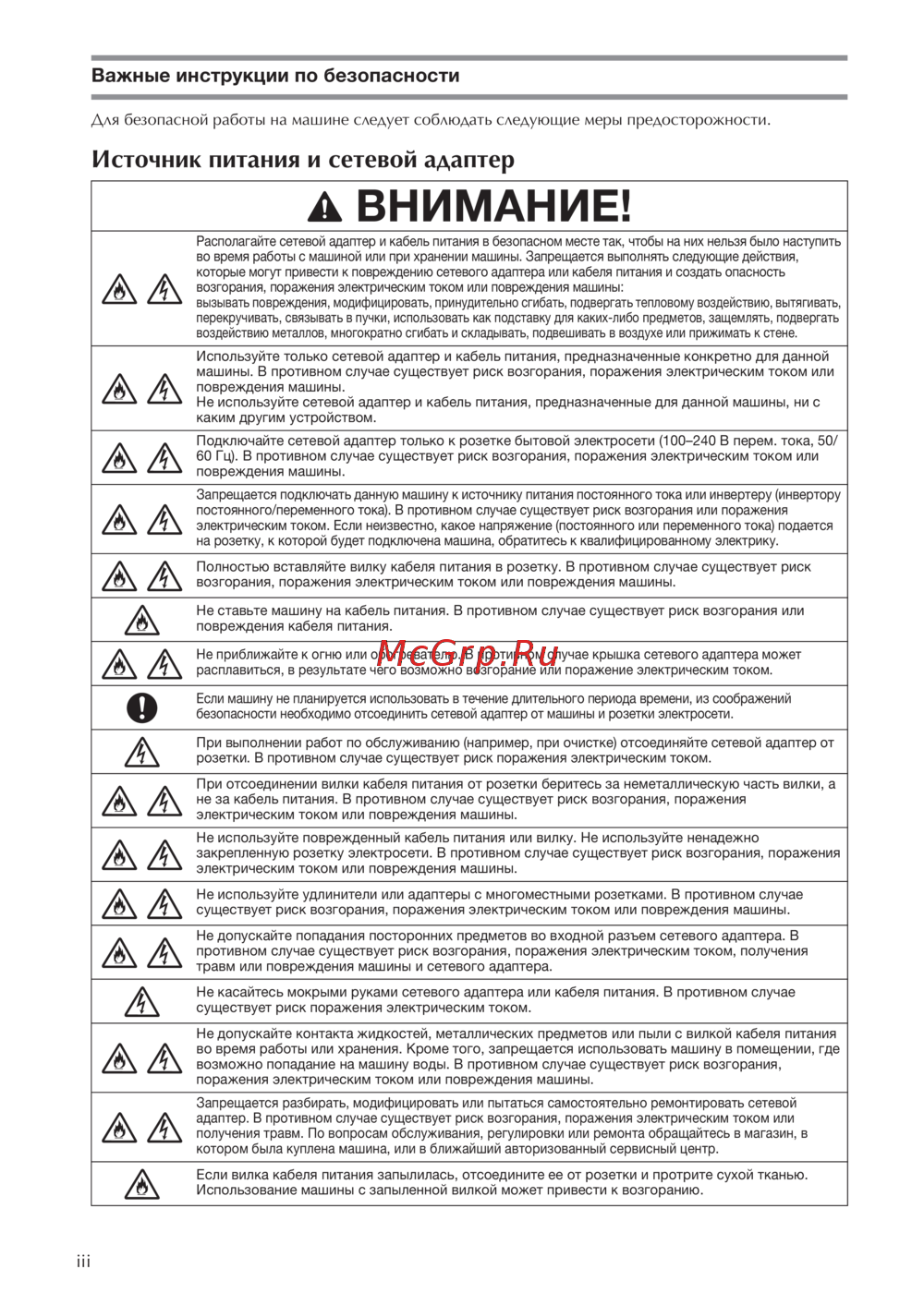 существует риск возгорания, поражения электрическим током или повреждения машины.