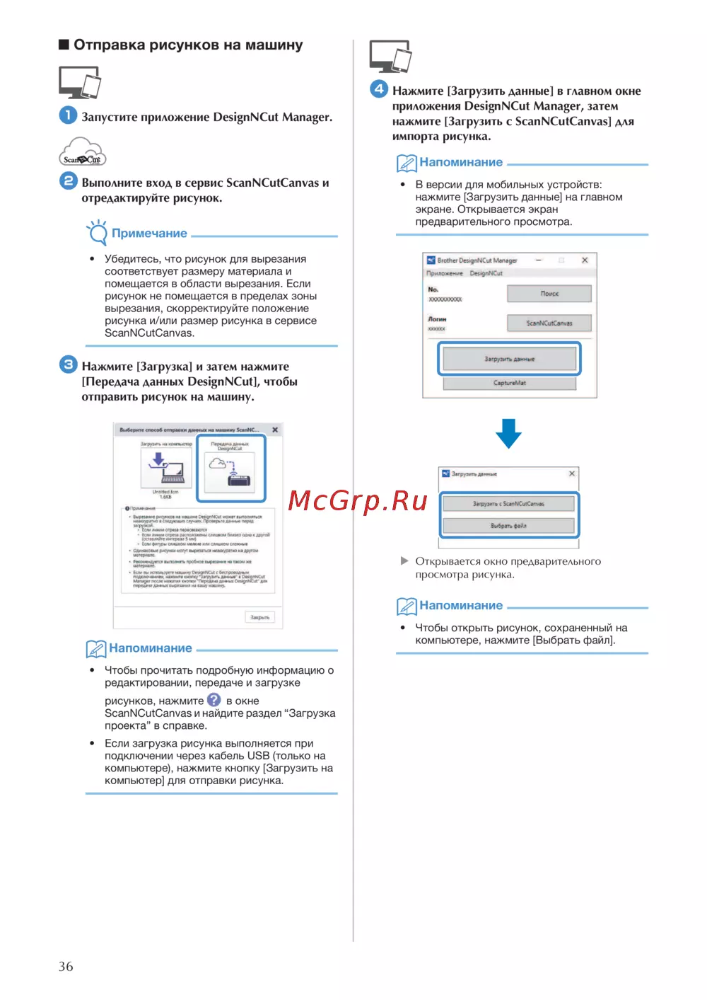 нажмите [Загрузить с ScanNCutCanvas] для