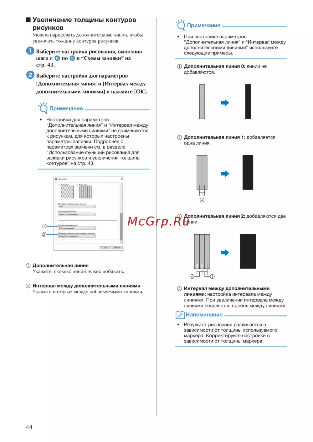 Brother DC100 — как увеличить толщину контуров рисунков с помощью дополнительных линий [52/77]