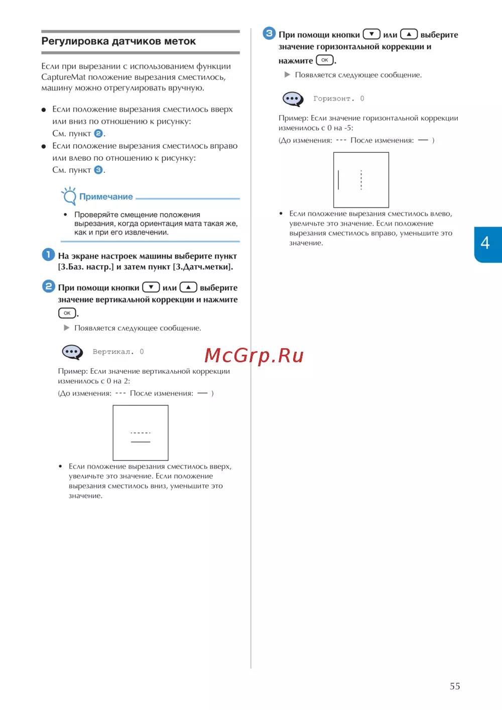 - Если при вырезании с использованием функции capturemat положение вырезания сместилось машину можно отрегулировать вручную p.63