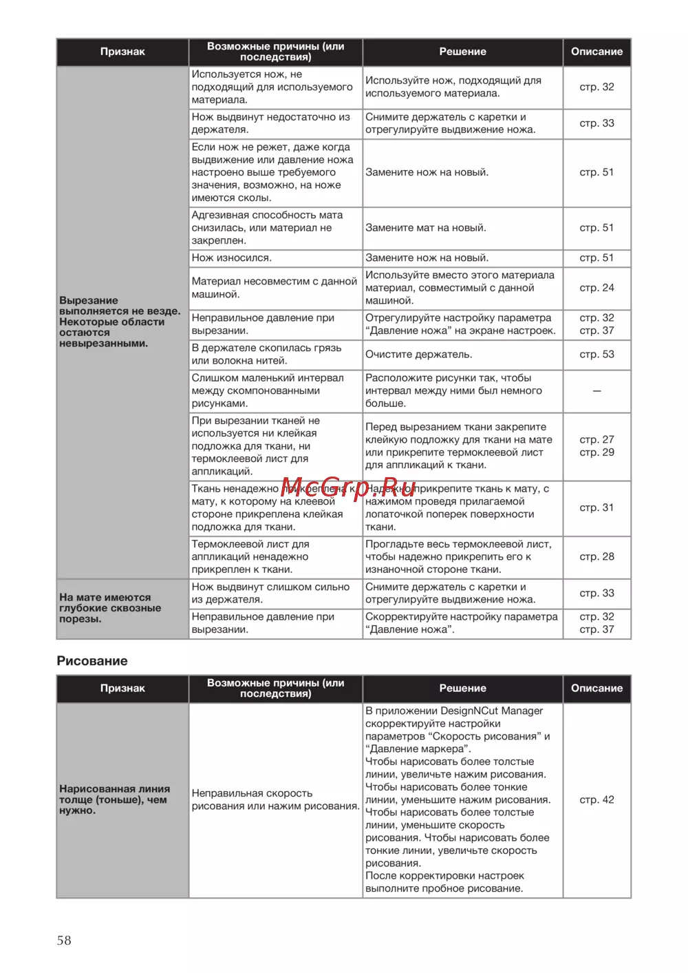 Brother DC100 — советы по вырезанию и рисованию: устранение проблем и настройки [66/77]
