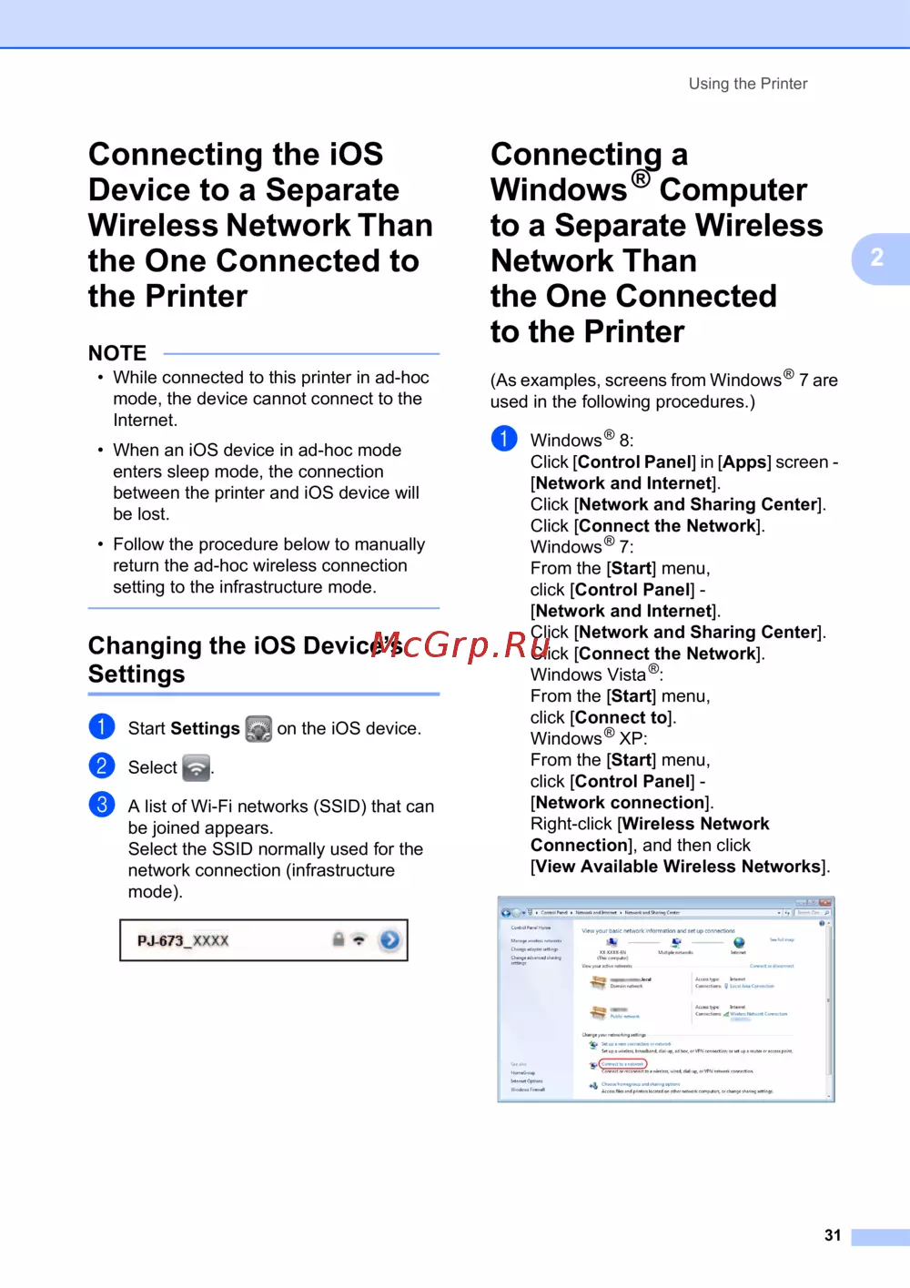 - Connecting the ios device to a separate wireless network than the one connected to the printer p.35