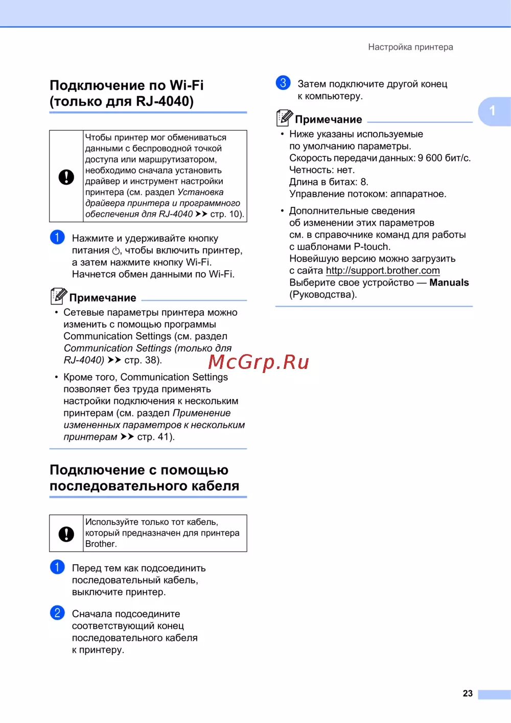 Brother RJ-4030 — настройка принтера: Подключение по Wi-Fi и последовательному кабелю [27/64]